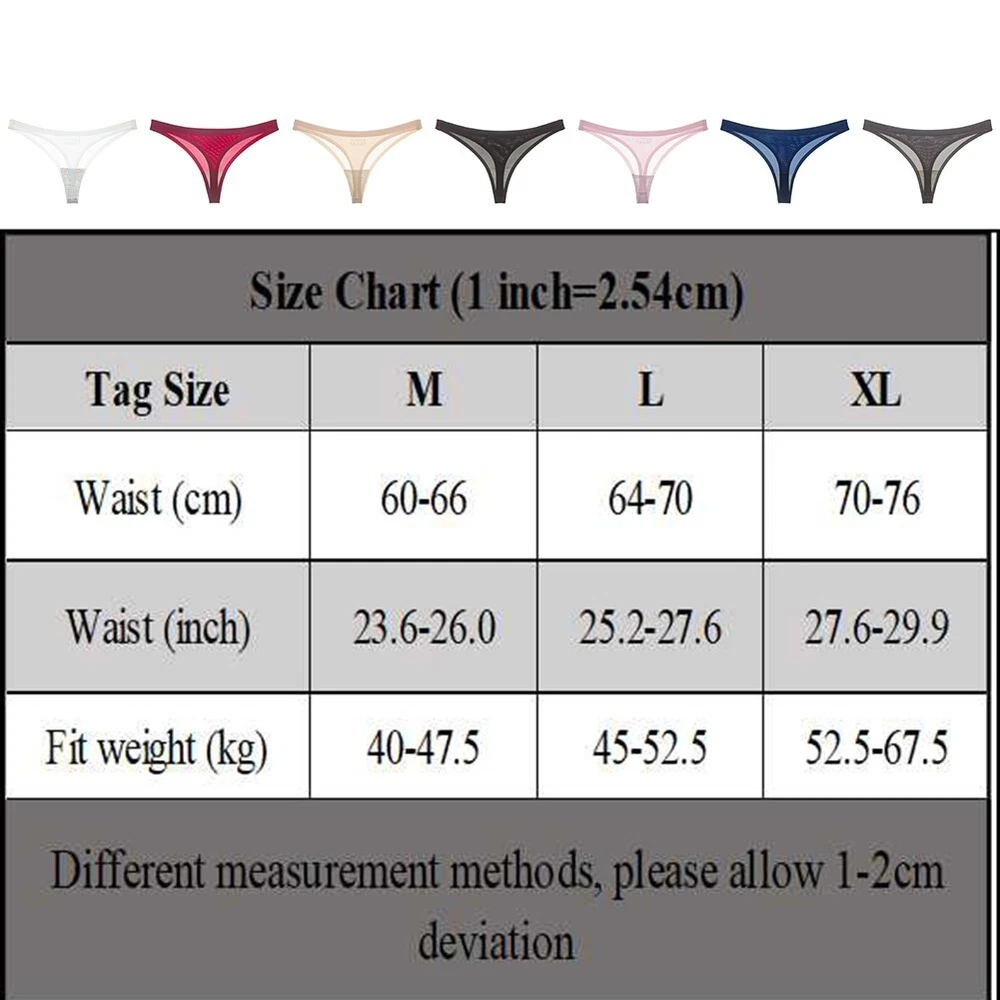 Sexy Lingerie Women Panty Seamless Underwear Royal blue M XL Ice Silk Thong DESCRIPTION Details: *Tag Size: M -XL,Size reference provided below. Size Chart (1 inch=2.54cm) Tag Size M L XL Waist (cm) 60-66 64-70 70-76 Waist (inch) 23.6-26.0 25.2-27.6 27.6-29.9 Fit weight (kg) 40-47.5 45-52.5 52.5-67.5 Different measurement methods, please allow 1-2cm deviation * Item Fabric: Nylon * Item Color: White, Black,Dark grey, Pink, Apricot,Royal blue, Claret( As pictures show ) * Item Features:Ice Silk Thong, Sexy Lingerie Women, Panty Seamless Underwear, Low-Rise Bikini * Item Condition : Brand New * Item Description: 1) Applicable G ender :Female 2) Clothing Length:Regular 3) Elasticity:Moderate elasticity 4) Pattern:S olid C olor 5) Style: Sexy 6) Suitable S eason:Spring, Summer, Autumn,Winter 7) Application:Vacation,Holiday, Daily,Home * Package Contents: 1*Thong ( Other items not included ) How to choose proper size? 1) Use garment compare with the sizes 2) Choose larger sizes if your sizes are same as the flat measurement size chart Notes: 1, The real color of the item may be slightly different from the pictures shown on website caused by many factors such as brightness of your monitor and light brightness. 2, Please allow slight (±2Cm)manual measurement deviation for the data. POLICES Shipping Payment WARRANTY We only ship to confirmed ebay Order addresses. Please comfirm that your Order address is in line with your shipping address. Please kindly note that the c ombined shipping is not provided because the shipping fee is calculated by weight. Also, the each additional item means exactly the the same color and size. It takes about 7 -15 working days to US; about 10-30 working days to other countries. Transit time may be a little delayed because of the bad weather and customs inspection . If you do not receive your item within 30 working days since payment finished, please contact us immediately for further assistance. Payment must be completed within 5 days. If you have any problems about payment, please contact us via ebay message. We strive for 100% customer satisfaction! Positive Feedback is very important to us. If you have any questions, p lease feel free to contact us via "Ask seller a question" . We will reply your email within 24 working hours.