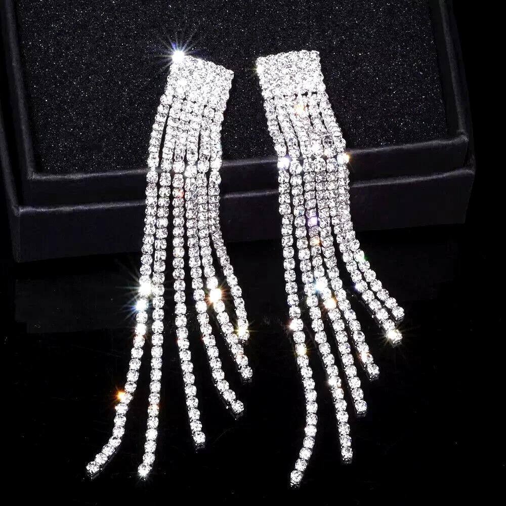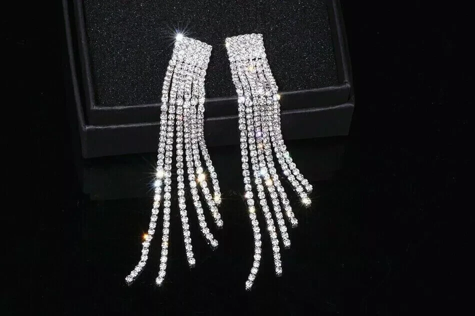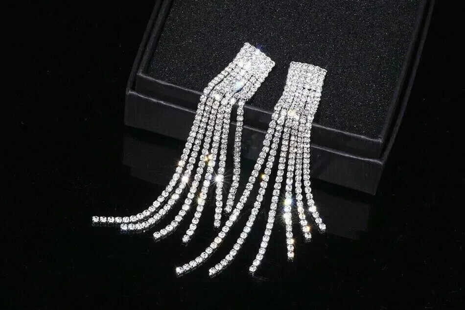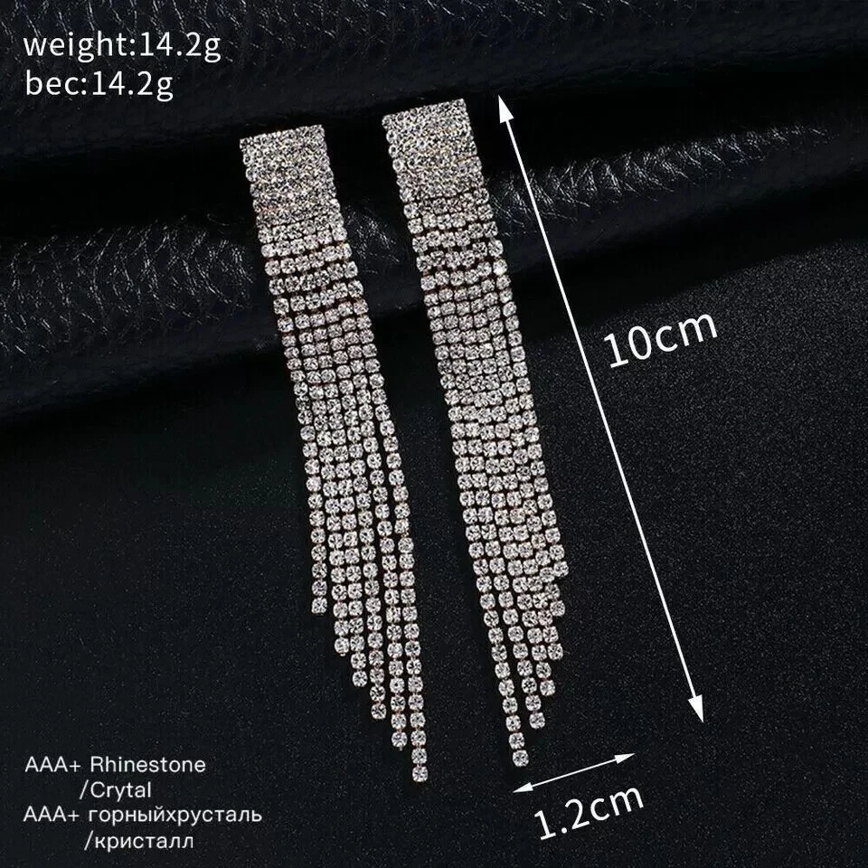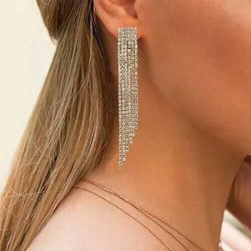 Earrings Women Rhinestone Crystal Long Tassel Bridal Drop Dangling Gift Earring Type: Drop Earrings Item Type: Earrings Fine or Fashion: Fashion Style: Trendy Metals Type: zinc Alloy Shape\pattern: Water Drop Gender: Women Material: zinc Alloy Model Number: WX006 Occasions: Wedding/Party / Prom / Anniversary Color: Gold/Silver/Multi-Color Gift for: Mom / Girlfriend / Wife / Daughter / Female friend Weight: 14g Package: Bubble envelope Notes: Due to the light and screen setting difference, the item's color may be slightly different from the pictures. Please allow slight dimension difference due to different manual measurement. Package Includes: 1 Pair of Earrings