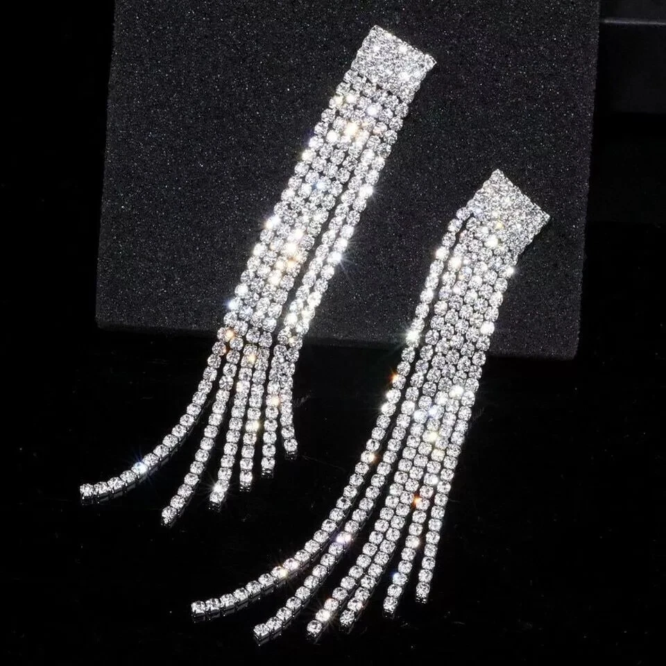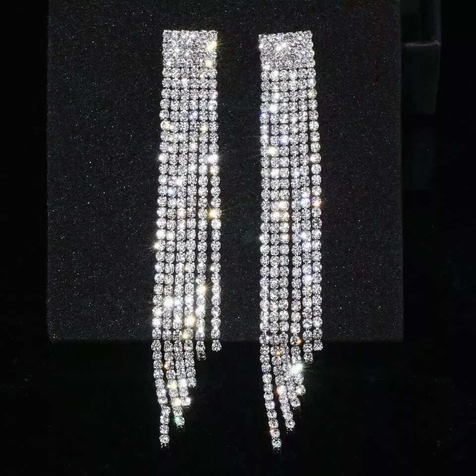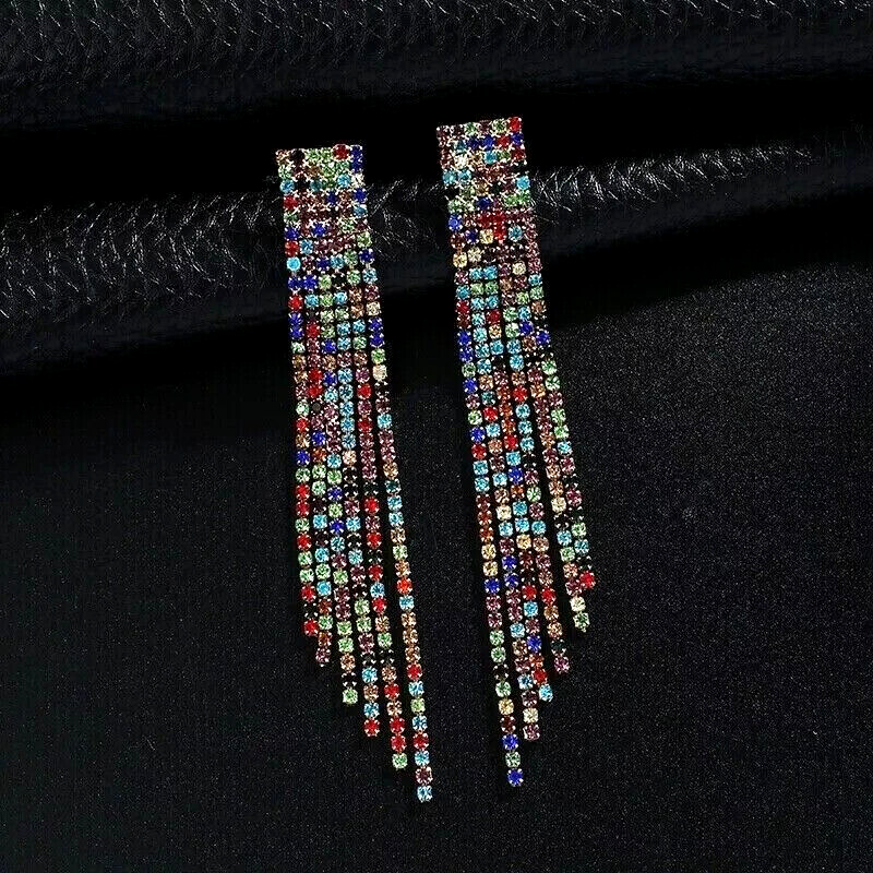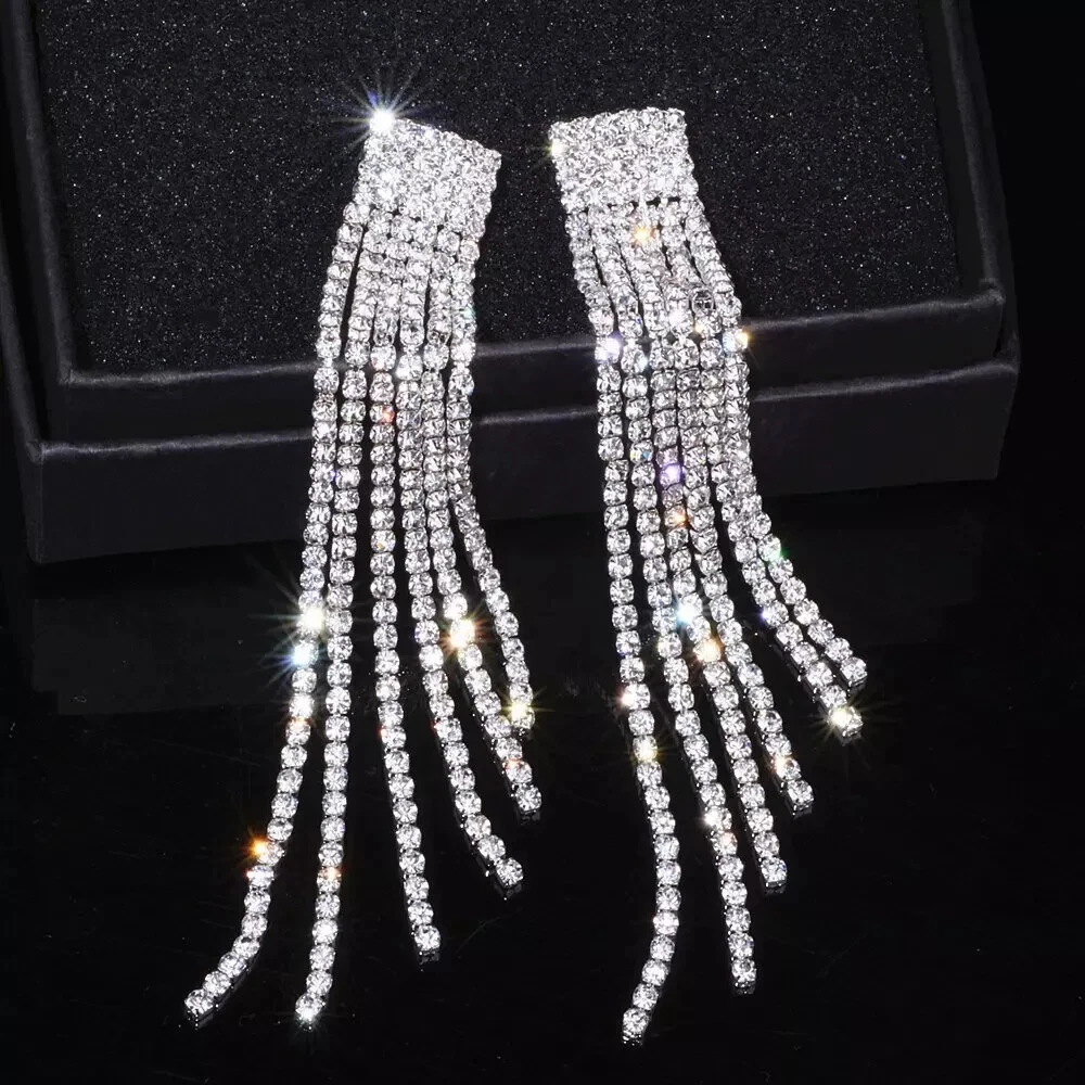 Earrings Women Rhinestone Crystal Long Tassel Bridal Drop Dangling Gift Earring Type: Drop Earrings Item Type: Earrings Fine or Fashion: Fashion Style: Trendy Metals Type: zinc Alloy Shape\pattern: Water Drop Gender: Women Material: zinc Alloy Model Number: WX006 Occasions: Wedding/Party / Prom / Anniversary Color: Gold/Silver/Multi-Color Gift for: Mom / Girlfriend / Wife / Daughter / Female friend Weight: 14g Package: Bubble envelope Notes: Due to the light and screen setting difference, the item's color may be slightly different from the pictures. Please allow slight dimension difference due to different manual measurement. Package Includes: 1 Pair of Earrings