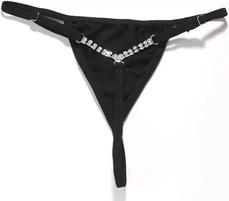 Color: Black, White, Pink Material: Rhinestone Package Contents:1* Sexy Thong Bikini Panties This body chain bikini is adjustable to fit nearly everyone. Show the world your love for hearts with the latest bling that's taking the fashion world by storm! This is great for a sure-fire way to attract attention. Wearing this to a Picnic, BBQ, or Other Social Gathering is a great way to meet new people or you can enjoy that special time for your significant other or others. Beach or Pool Essentials: This Rhinestone Underwear is a summer must-have, perfect for a beach, pool party, or tropical getaway. You'll feel comfortable and free while wearing this pretty bikini. Just image the warm feelings you'll have knowing that others are envious of you and your new bikini!