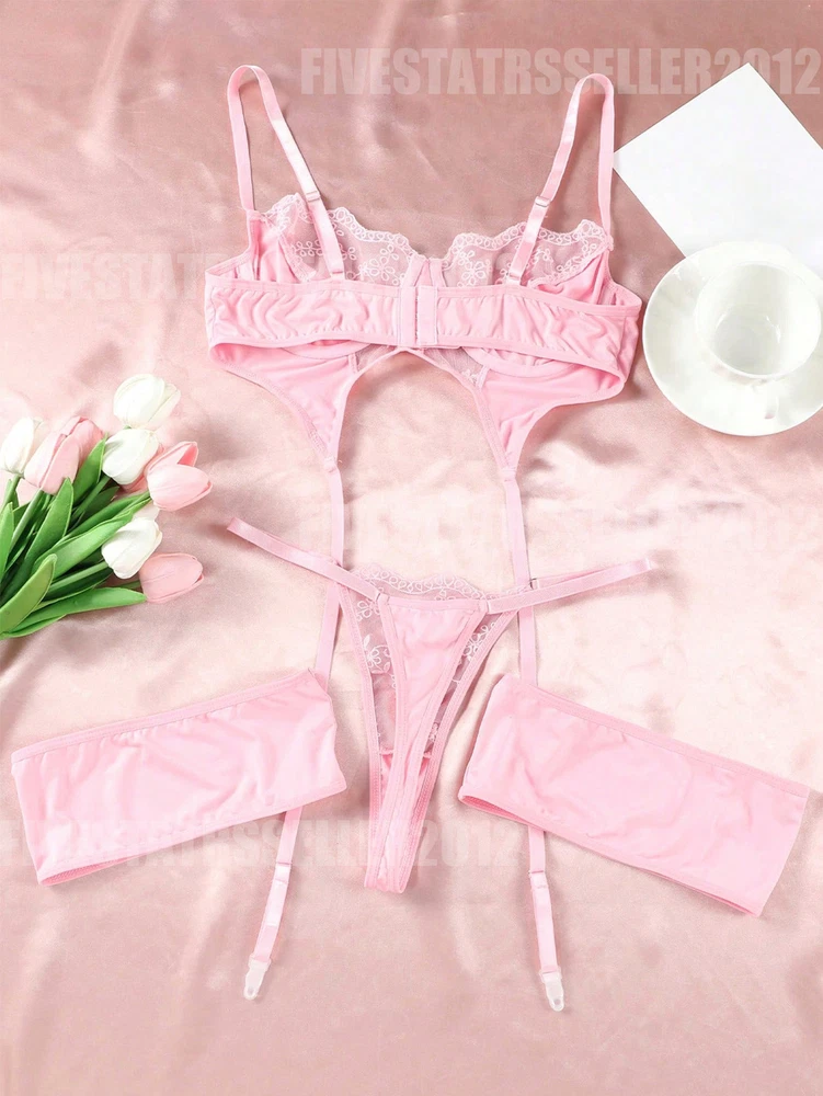 Colour: Pink Type: Sexy Lingerieset Pattern type: Single color Style: Sexy Type panty: String Number of pieces: 3 pieces sets Size: Length size Details: Contrast kant Dust: Stretch Underwear and sleepwear users: Couple, Teenager, Bride, Bridesmaid Maintenance instructions: Hand wash, do not dry clean Zak: Nee Tops Material: Kant Tops Composition: 95% Polyester, 5% Elastane