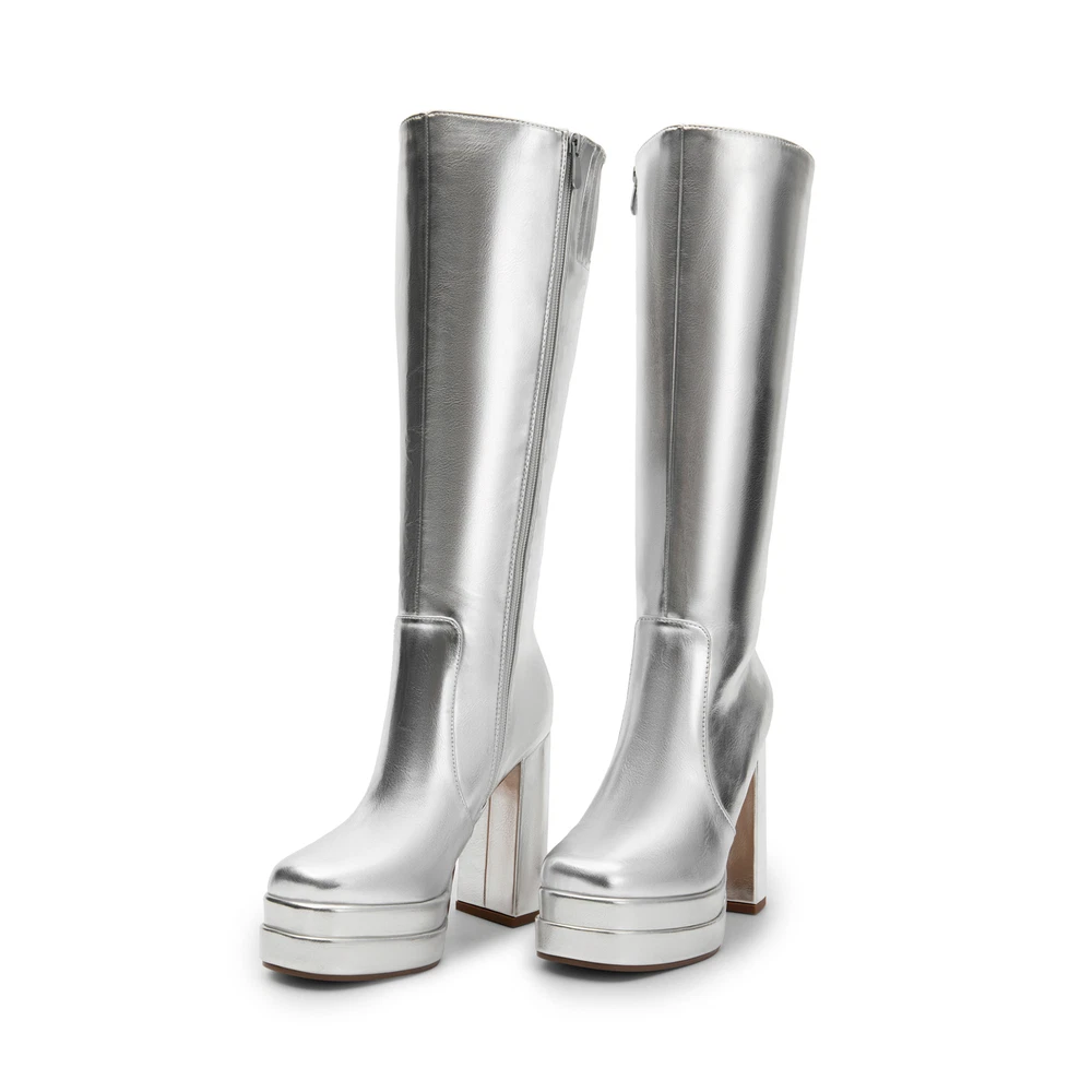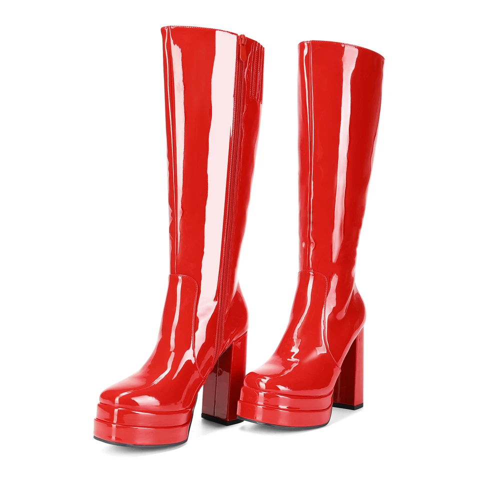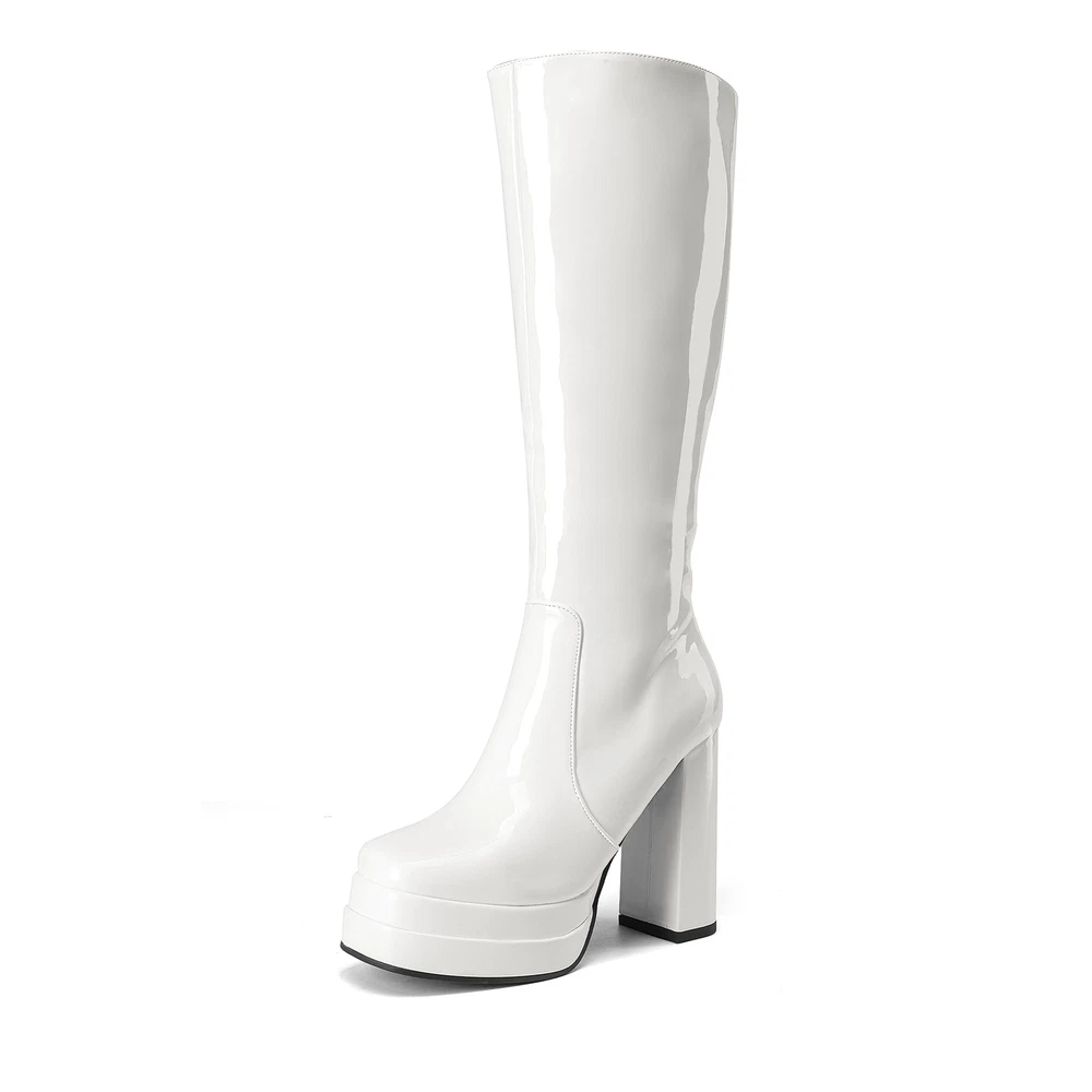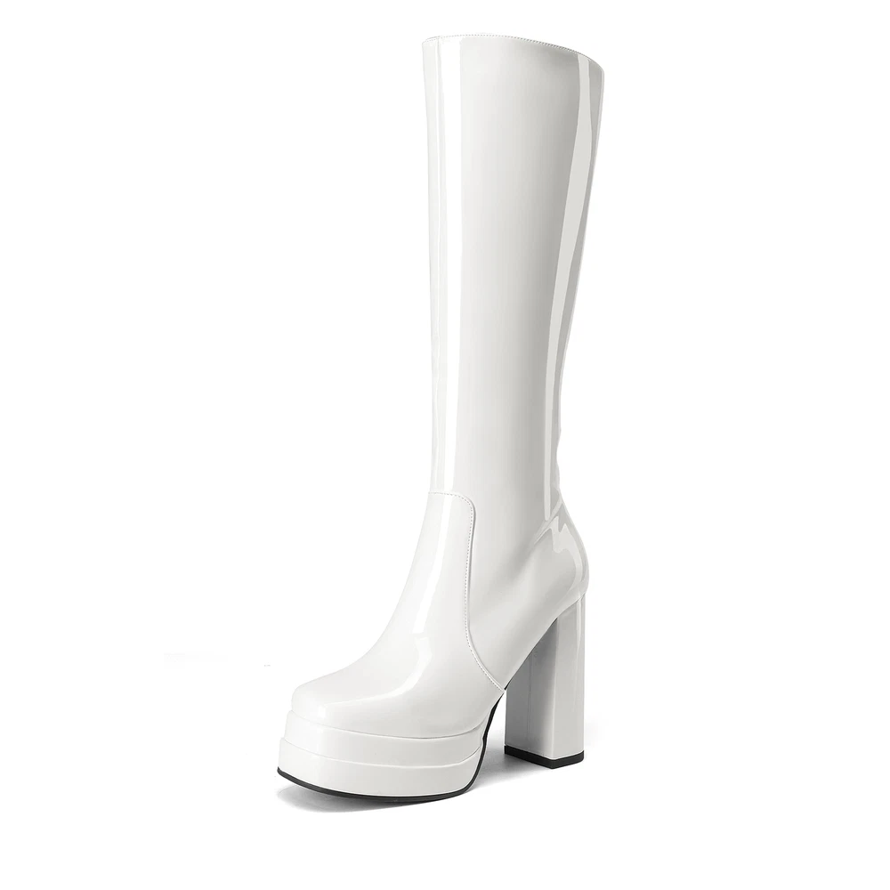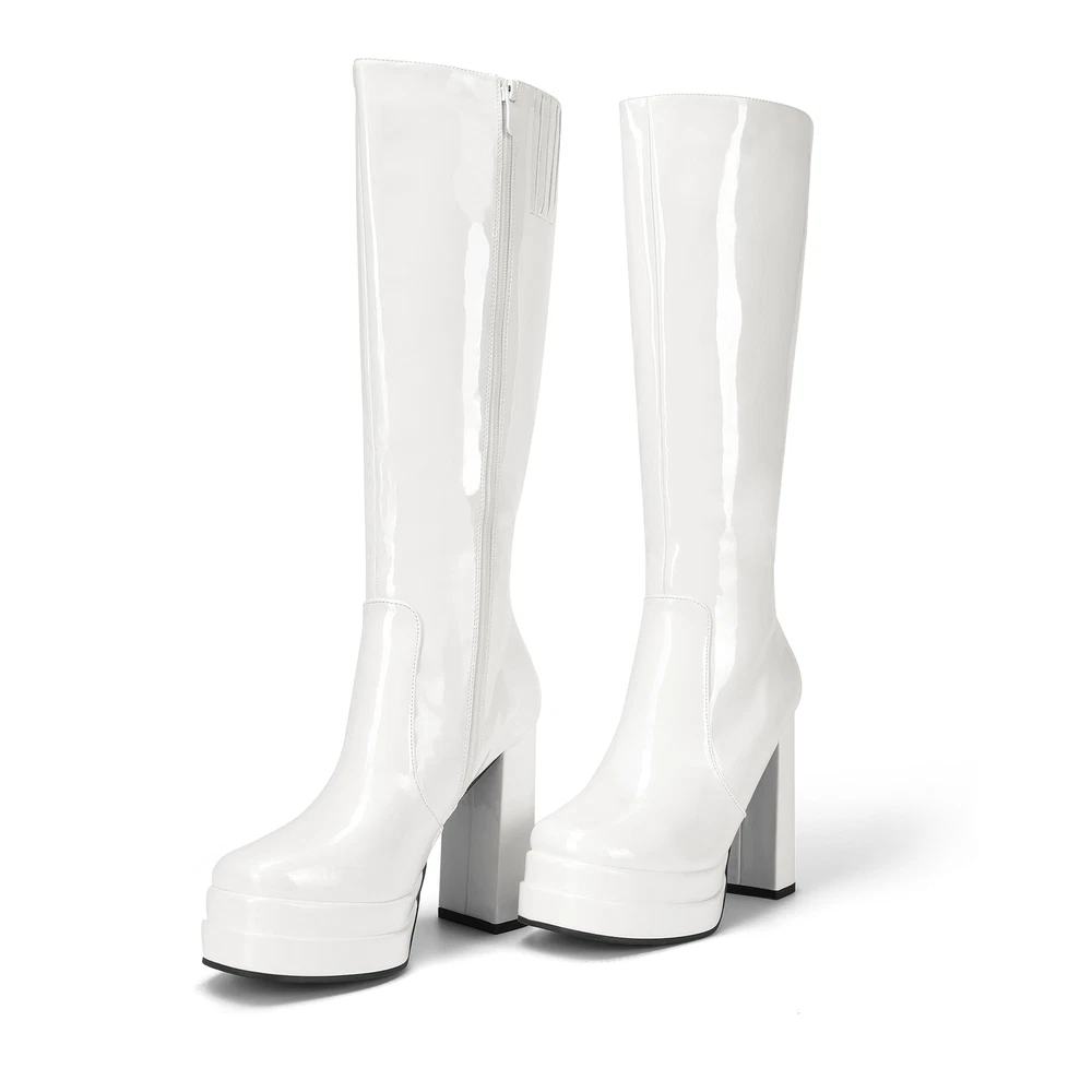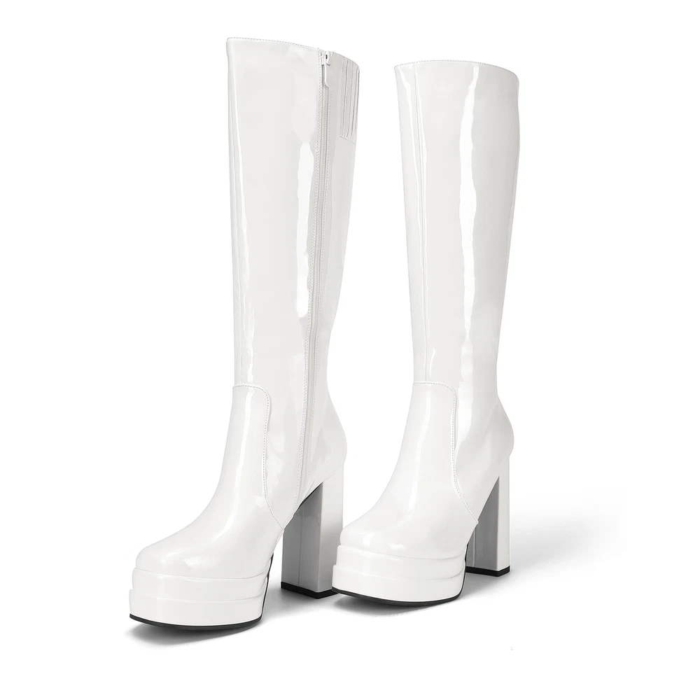 Sexy Women’s Knee-High Platform Gogo Boots with Chunky Block Heels