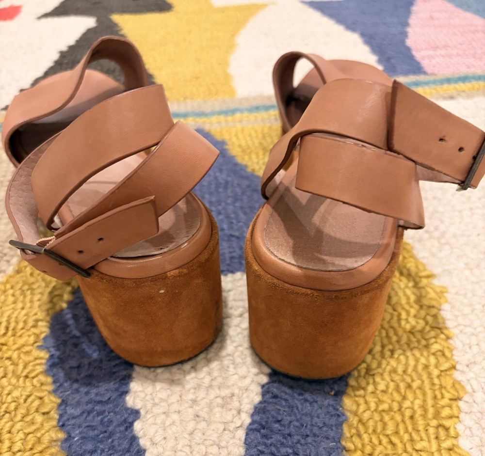 Seychelles size 9.5 leather chunky heel sandals made in India. See photos for signs of wear.