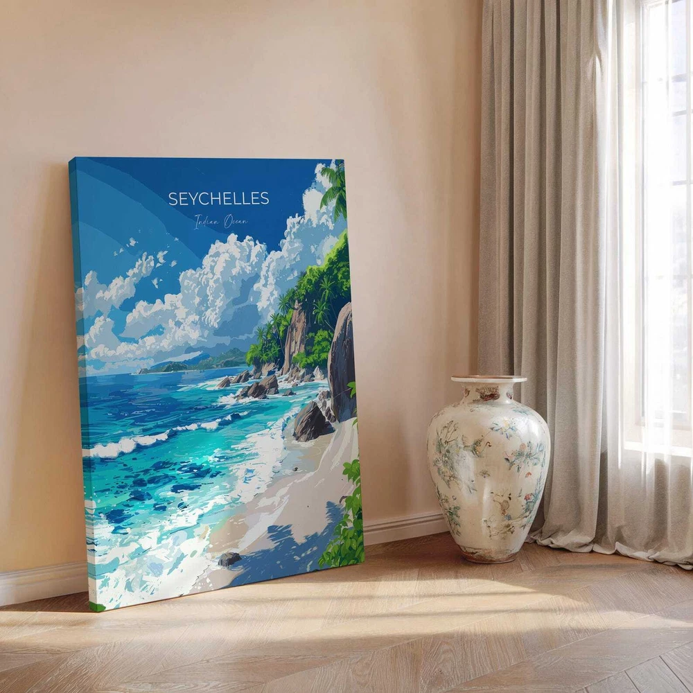 Seychelles Travel Poster Wall Art Travel Print Of Seychelles Indian Ocean Seychelles Islands Art Lovers Gift Material: Premium luster photo paper Print type: Inkjet printing One side printed + The finish provides the highest possible resolution and color saturation + Lasts up to 200 years in color and 400 years in black-and-white + Printed on high-quality resin-coated photo base paper medium + Posters can be hung with double-sided tape, tacks, or framed + Hand washing with a gentle cry cloth is recommended for extended durability I will hand select the best choice of paper for your chosen design to ensure top quality results for a beautiful, bright and luxurious print. All prints are sealed in cellophane slips for protection during transportation, and are shipped in a protective cardboard envelope.