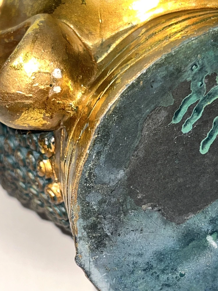 Seymour Mann Buddha Bust Head Figurine Statue Gold-Tone Gilt Resin 12.5" H x 7" W x 7" D Signed Great gently used condition with some minor normal usage wear including some small scuffs, see pics.