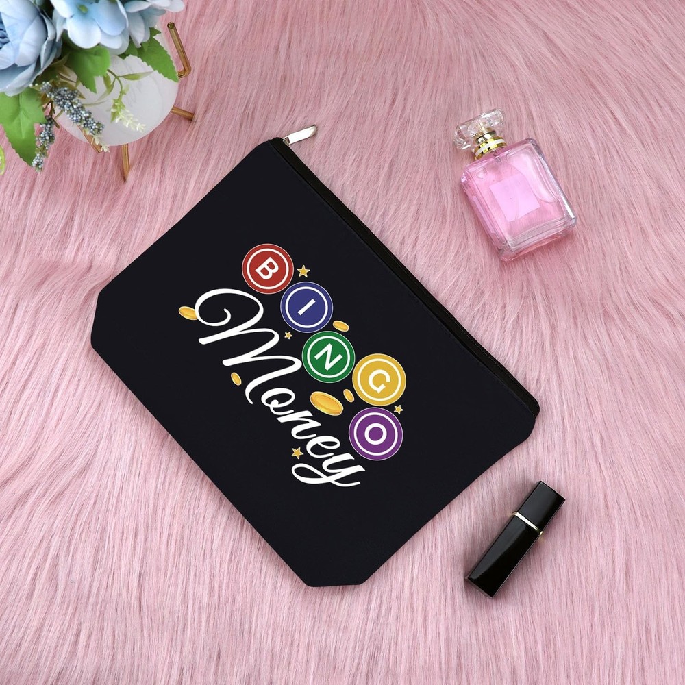 Sfodiary Bingo Game Lover Gift Bingo Money Makeup Bag Casino Lovers Gift for Women Cosmetic Bag Casino Gambling Player Birthday Christmas for Gambling Lover Travel Cosmetic Pouch(Black) Product Details Color: Black-Bingo Lover Gifts Makeup Bag Brand: Sfodiary MPN: Does not apply UPC: Does not apply EAN: Does not apply Product Dimensions: 9.84 x 6.69 x 0.32 inches Item Weight: 1.44 ounces Department: Women Makeup Bag for PurseDouble-sided printed, high quality coating, to ensure high quality images that will remain vibrant with daily use.This Cosmetic Bag is made of oxford cloth, the material makes the makeup bags practical and durable for daily use, lightweight and easy to carry, reusable and long-lasting.it's easy to clean, it can be washed by hand wash.Perfect travel accessories for women! Bingo Player Birthday GiftThis Bingo Queen cosmetic bag is perfect for gamer birthday gift, Christmas gift, Valentine's Day gift, Mother's Day gift, New Year's gift, Baptism gift, Anniversary gift or just because. Multifunctional Cosmetic BagProper size and space, the good friend makeup bags measure approx 10 x 6.7 inches / 25 x 17 cm, which has plenty of storage space to store your lots of cosmetics.Can store your cosmetics easily, such as makeup brushes, mascara, lipstick, wipes and so on.Smooth zipper in vantage appearance, tight to protect items in, it can ensure your items not easy to fall off.It's a perfect travel bags for Women.THIS ITEM IS NOT INTENDED FOR USE BY CHILDREN 12 AND UNDER.