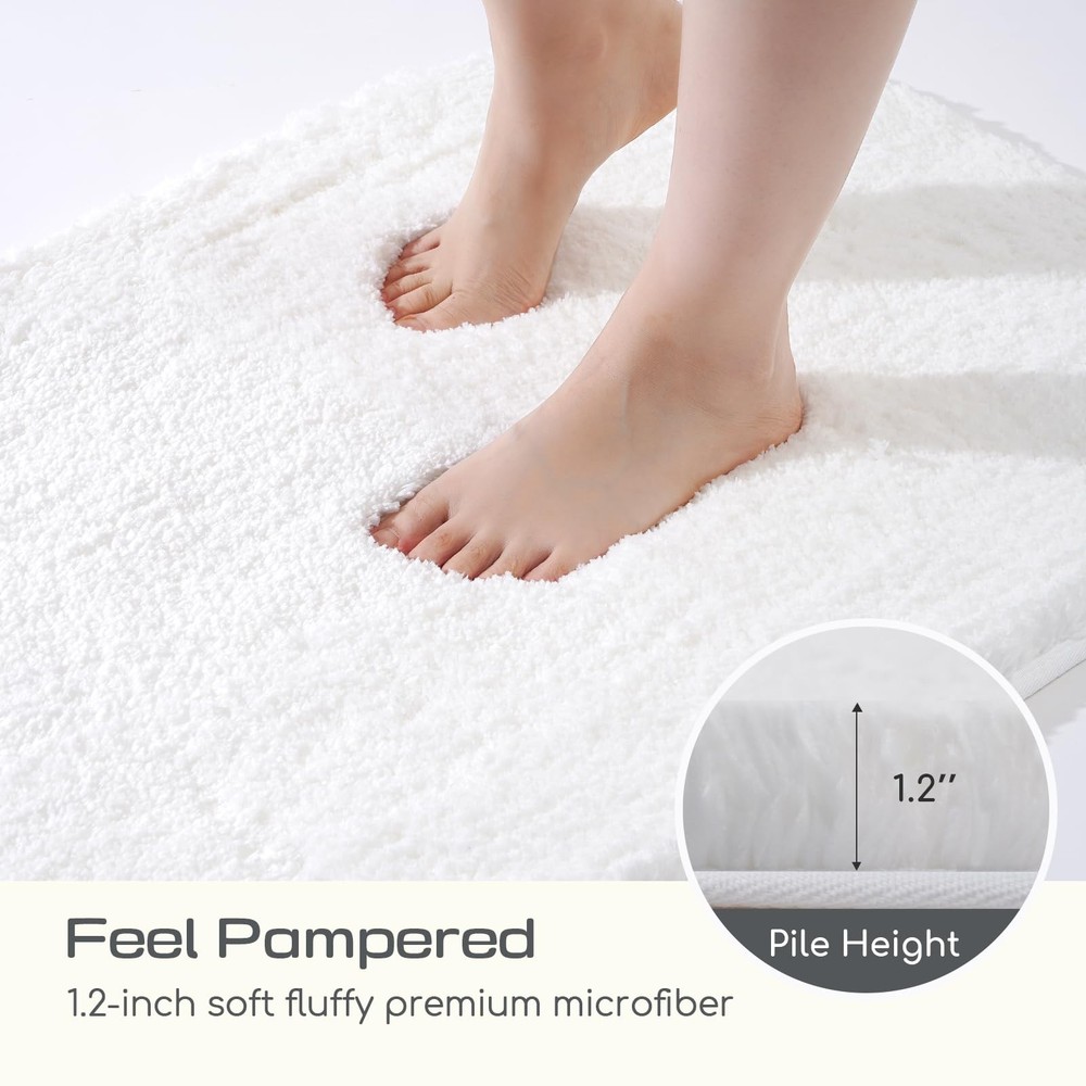 1 1.2-Inch Fluffy Microfiber - Experience unmatched softness and comfort with our bath mat made of 1.2-inch ultra soft microfiber. Thicker than other bath mats in the market, our tufted bath mat features the coziest, softest microfiber you have ever seen. Soft & Comfortable - Indulge in unparalleled comfort with our luxurious bathroom rugs. Made from high-pile microfiber, it envelops your feet in soothing softness, providing a heavenly experience after every bath. No more stepping onto hard, cold floors—our bath rug pampers you with its plush and cozy feel. Ultra Absorbent & Quick Dry - Experience exceptional water absorption with our premium bath rugs. The thick microfiber efficiently wicks away moisture, leaving your feet dry and comfortable in a matter of seconds. Enjoy the convenience of a fast-drying bath rug that enhances your daily routine. Non-slip Backing - Safety is paramount, especially in the bathroom. Our tufted bathroom mat features a TPR anti-slip backing that ensures stability and prevents slips and falls. It provides secure footing, giving you peace of mind for your family's safety. Easycare & Built to Last - Made from top-quality microfiber and crafted with the utmost care, our bath mats for bathroom are built to last and provide unbeatable comfort and durability, even after repeated washing. Maintenance is a breeze with our bath mat, simply machine wash on gently in cold water, then tumble dry low.