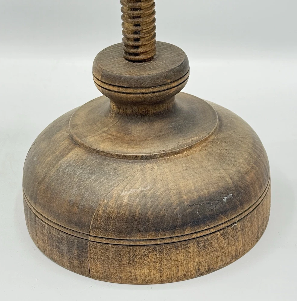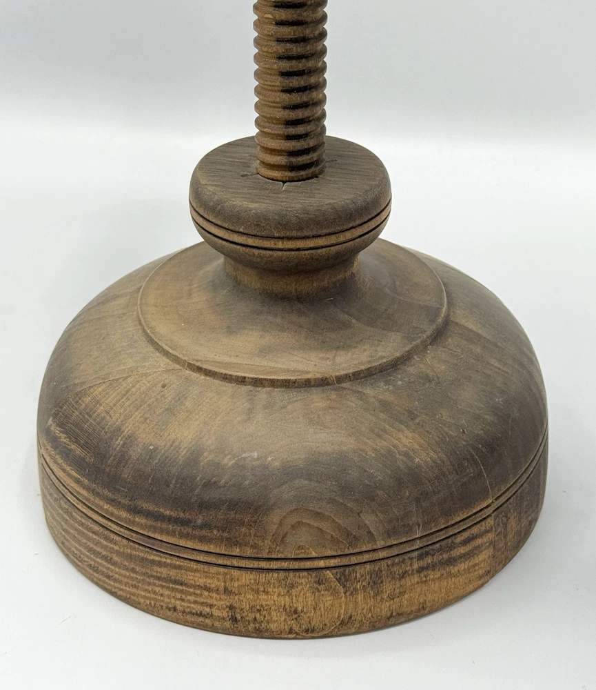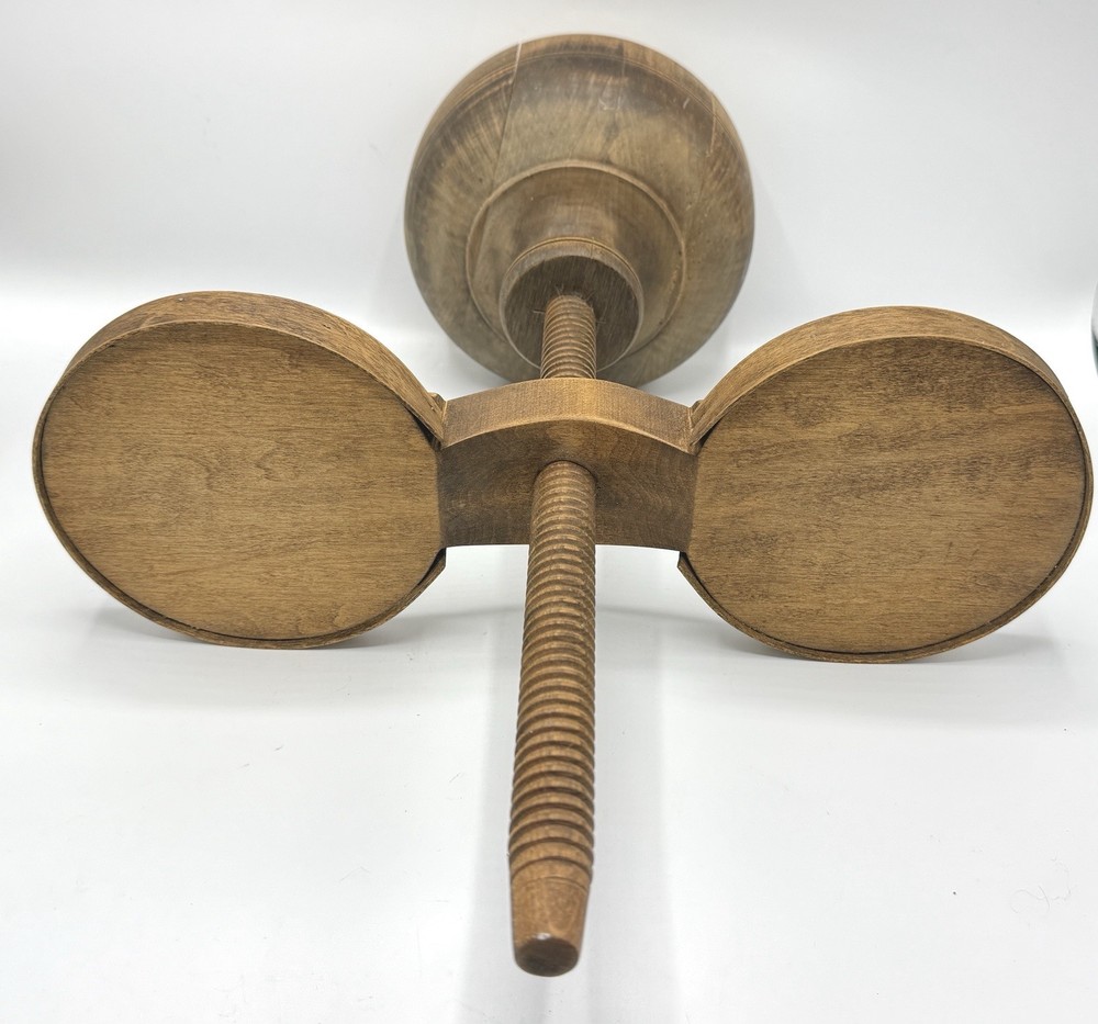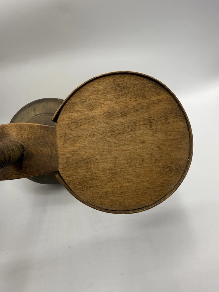 Shaker Workshop Shoemakers Candlestick Spinning Wooden Vintage Holds 2 Candles. Please review all photos carefully. It appears the wood has gotten a bit dry, there are some cracks where it is joined together in the base. The ends of the wooden wrap on the holder parts are pulling away from the sides a bit as shown and one has a split where it was attached and there is a hard raised area where one of the other brass has loosened and caused the wood to be pushed out there. (See all photos for flaws) . The candle holder spins freely as it should. I have not attempted to polish, oil, or clean it. If you like it but feel the price is too high save it by clicking the heart, then you will be notified if I send out a special offer or drop the price. Lot # 3237
