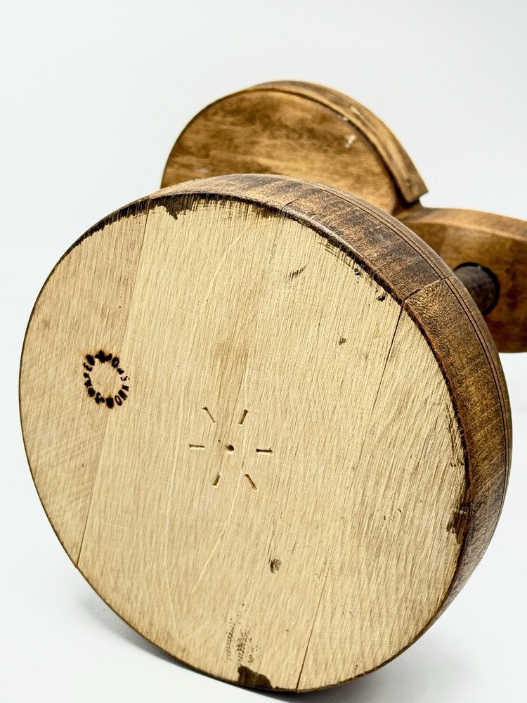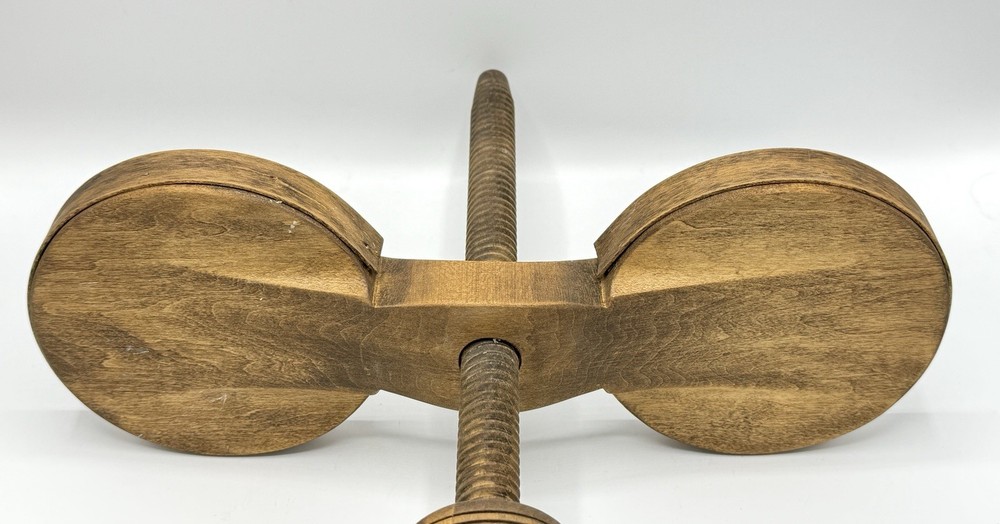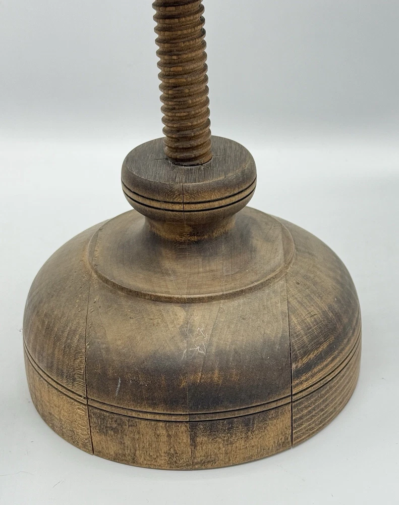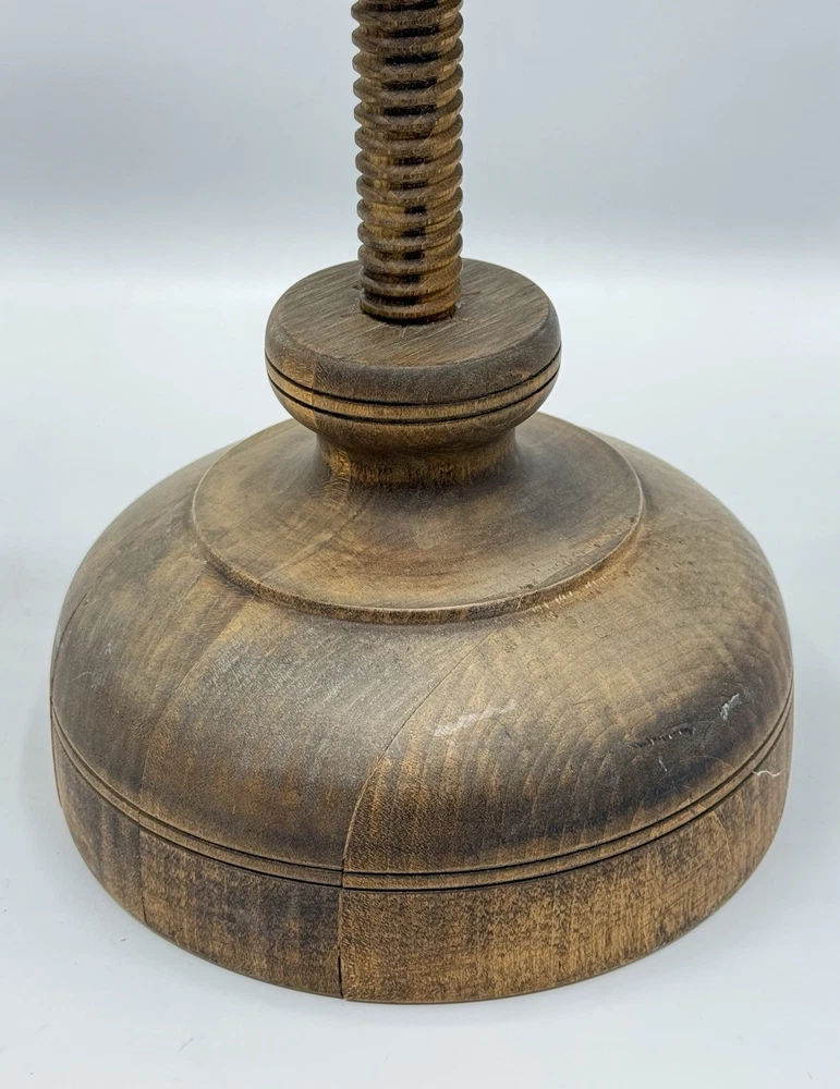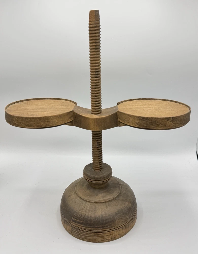Shaker Workshop Shoemakers Candlestick Spinning Wooden Vintage Holds 2 Candles. Please review all photos carefully. It appears the wood has gotten a bit dry, there are some cracks where it is joined together in the base. The ends of the wooden wrap on the holder parts are pulling away from the sides a bit as shown and one has a split where it was attached and there is a hard raised area where one of the other brass has loosened and caused the wood to be pushed out there. (See all photos for flaws) . The candle holder spins freely as it should. I have not attempted to polish, oil, or clean it. If you like it but feel the price is too high save it by clicking the heart, then you will be notified if I send out a special offer or drop the price. Lot # 3237