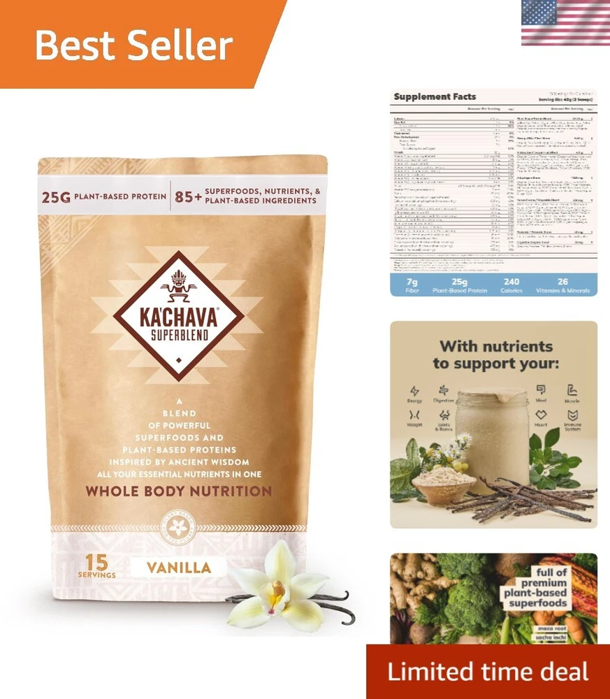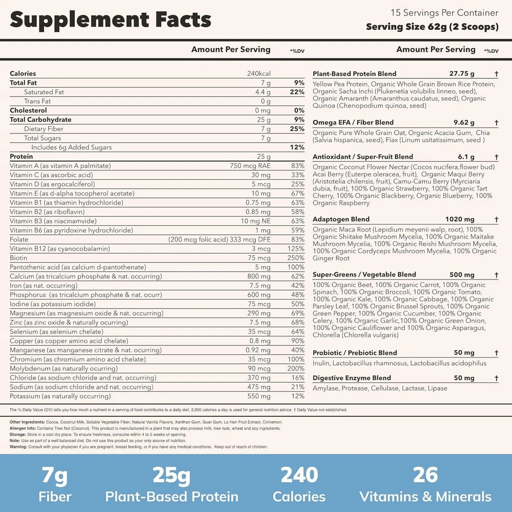 Shakes - Vanilla Vanilla 85+ superfoods, nutrients, and plant-based ingredients 26 essential vitamins & minerals 25g of protein 17 greens & veggies 8 antioxidant-rich fruits Vegan, Gluten Free, Soy-free & Dairy-free