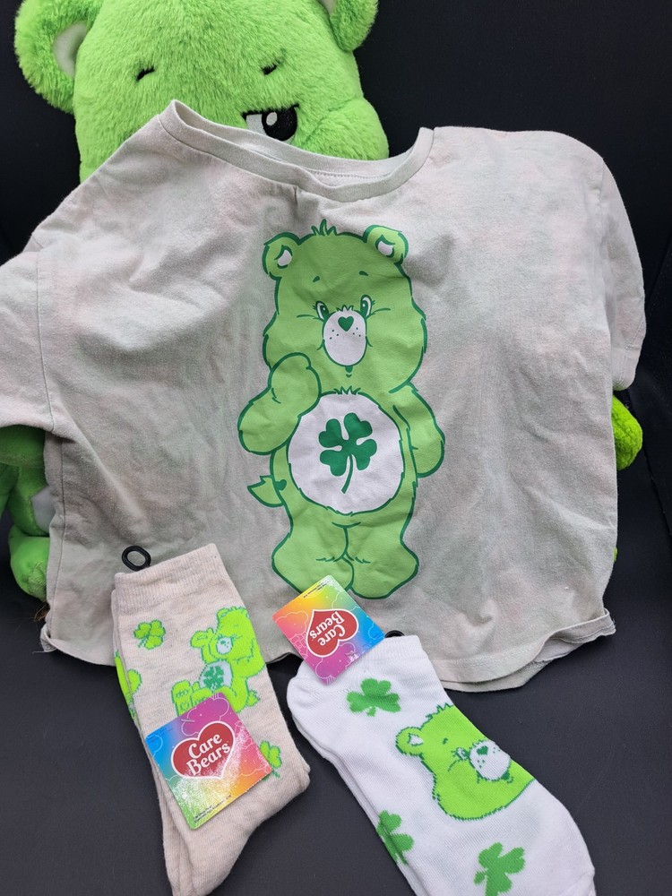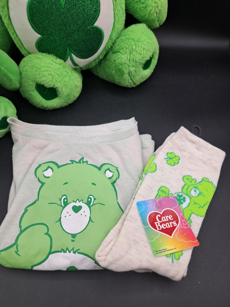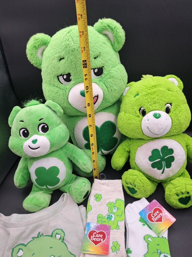 This lot of six Care Bears features the iconic green shamrock design on each bear. These plush stuffed animals are perfect for any occasion and make great gifts for any Care Bears fan. The bears are original and not just reproductions. Each bear weighs 2 pounds and is made of high-quality plush material. The lot includes a variety of Care Bears, all in great condition. This is the perfect opportunity to add to your collection or to start a new one.