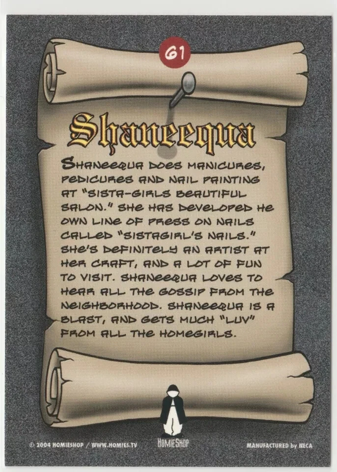 Shaneequa #61 Homies Swap Cards 2004 NECA Lowrider Chicano Barrio East LA personal stock photos centering of cards may vary compared to listed images