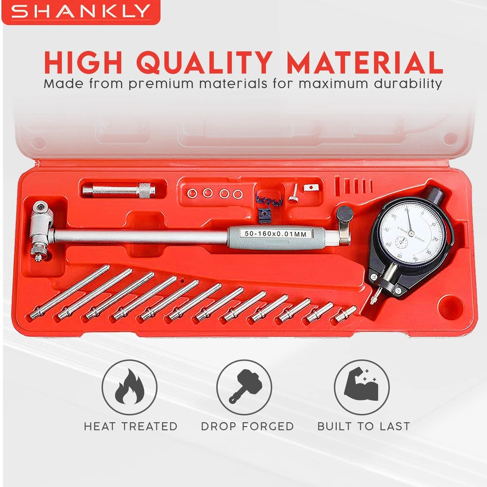 Shankly Dial Bore Gauge 0.001m, Deep Engine Hole Cylinder Measurement Inside Micrometer Gage Cylinder Tool Kit, 2m to 6m Comes with Carrying Case for Bore Measure ✅ ACCURATE & PRECISE: This dial bore gauge is primarily used by machinists to precisely measure the inner diameter of bores in motor engines. When measuring cuts or hole sizes, a dial bore gauge's speed and accuracy can save a lot of time ✅ MEASURING RANGE: With this dial gauge, you can easily and accurately measure cylinder bores for taper. They have a measuring range of 2-6m and 0.001m and are equipped with a self-centering guiding protective bridge for dependable and repeated use ✅ WELL-CONSTRUCTED ENGINE TOOL: A dial bore gauge that is built to be irreplaceably reliable and precise, allowing for more efficient and trouble-free repairs. This premium bore gauge is built to last ✅ HEAVY-DUTY CARRYING CASE: Our bore gauge comes neatly in a tidy blow molded case with a built-in handle and slide latches that will make it simpler for you to keep track of each tool and arrange the entire set ✅ SATISFACTION GUARANTEED: We stand by the term "quality," and all of your items will arrive in good condition when you order from Shankly. Please us if you have any questions about your purchase. We will gladly assist you These bore gauges are used to accurately measure internal dimensions of work pieces by use of comparative method. They are equipped with a guiding protective bridge which can be self-centering for reliable and repeated use. Please note : --- If the item cannot use or you received your item not as expected. Please let us know. You can return the item for getting a full refund. The full refund is a guarantee after the item is returned. Of course, there is no cost for you to return the item back. ---Again, If you want open an eBay return case. If it is possible, could you please help us write or select the reason for return as "change my mind " or "order by mistake" or "Doesn't fit or " Just didn't like it " . Do not worry, We do not charge anything. You still received the full refund also. --- Please don't write or select another reason. It will affect our eBay performance. If you consider helping us, it would mean so much to us. Please consider it as a support for building up our eBay into a better community. --- If you have any problem with your order, please contact us and we will do our best to make you satisfied. Store Policy 100% Satisfaction Money Back Guarantee, Return accept every case. Fast Shipping, Only 1-2 Days Handling Time. We try to ship most items within 24 hours of payment Most orders are in transit for two days but some may take longer. Please Contact us by eBay message only, We usually respond within 24-48 hours on weekdays. Buy with confidence. We ship through Fast Trusted shipping carrier and storage in best warehousing services throughout the United States. Your kind positive feedback and full score rating would mean a world to us, we do appreciate. If you feel dislike or not satisfy about anything and thinking about giving us a neutral or negative feedback or not giving full score rating to us, please kindly contact us through eBay message before doing that, we would like to attend to any of your concerns and make things right for you. Shipping Policy We only ship to addresses that record on eBay data. We provide Fast shipping via one of the most reliable carriers (UPS, FedEx, USPS, etc). We do not ship to APO/FPO addresses or PO Boxes allowed. Local pickups and combined shipping options are not provided at this time, sorry for this inconvenience. International buyers please note: Import duties, taxes, and charges aren't included in the item price or postage cost. These charges are the buyer's responsibility. Please check with your country's customs office to determine what these additional costs will be prior to bidding or buying. Return Policy 100% customer satisfaction Money Back Guarantee, if the item received is either not as described or damaged in many ways. We will always guarantee a return with full responsibility. Contact us and simply follow our instruction. We will provide you with complete return instruction to your eBay message. The location of the warehouse responsibility for the return will be determined by the fulfillment service department.Of course, there is no cost for you for return item back. Once the item arrived at our warehouses and confirm from the tracking number that the item has been delivered.We will issue you the refund within 2 business day. Again, If you want open eBay return case. If it possible , could you please help us write or select reason for return is "change my mind "or "order by mistake" or Doesn't fit or " Just didn't like it ".Do not worry, we do not charge anything. You still received the full refund also. Please don't write or select another reason. It will be effect with our eBay performance. If you consider to help us, it would mean so much for me. Please consider as a support for build up our eBay a better community.