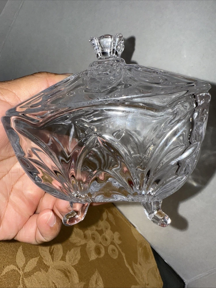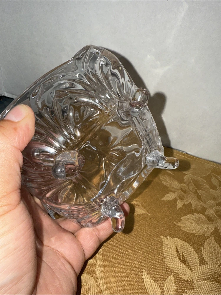 Elevate your home decor with this handcrafted Shannon Godinger crystal candy dish, complete with a glossy finish that reflects light beautifully. Its Bohemian glass design exudes an air of elegance, making it a stunning addition to any display cabinet or centerpieces for special occasions. The dish features a single compartment, perfect for showcasing a variety of sweets or even as a standalone statement piece. Crafted from high-quality crystal, this piece is a testament to vintage charm with its timeless clear color and design. The dish stands on four feet, ensuring stability and ease of use. Whether it's for serving or as part of your crystal collection, this Shannon Godinger dish is a blend of functionality and style. Please refer to the provided pictures for a detailed view of its dimensions and craftsmanship. Look at the pictures before making your purchase