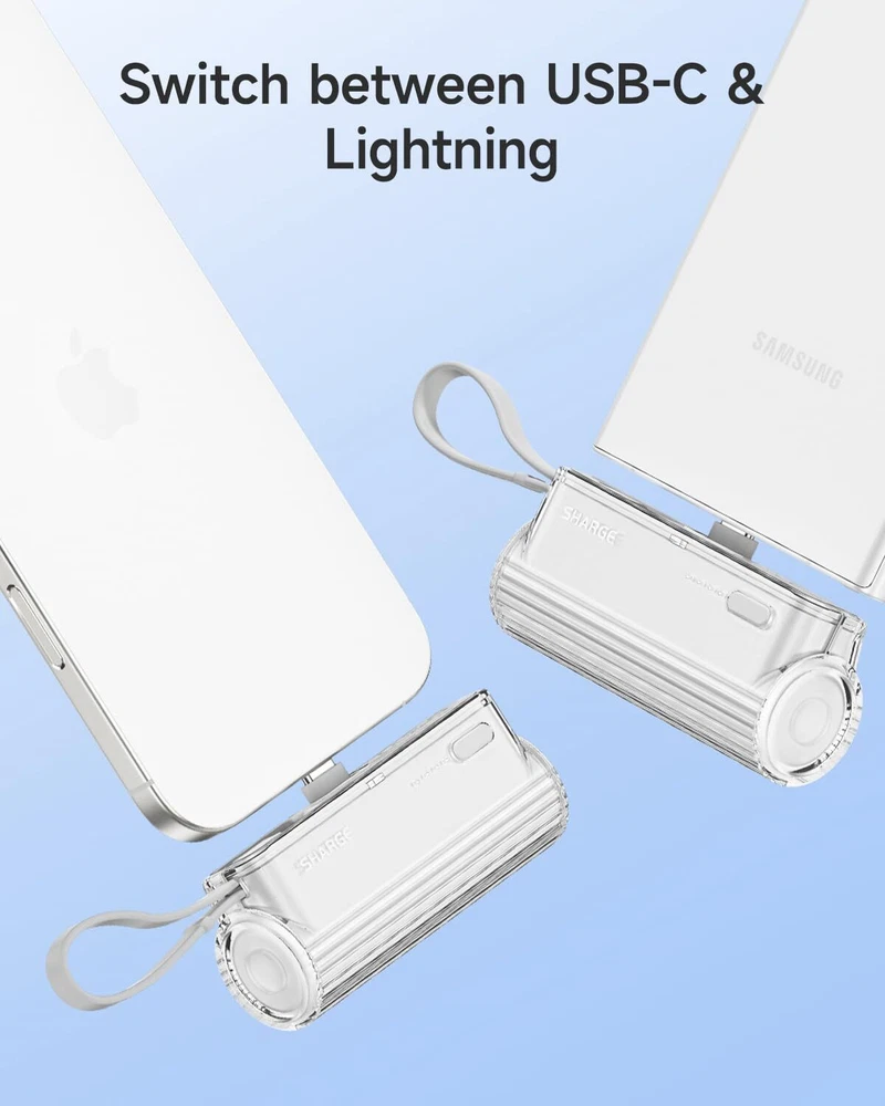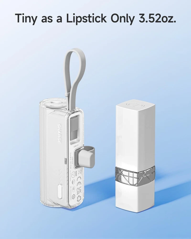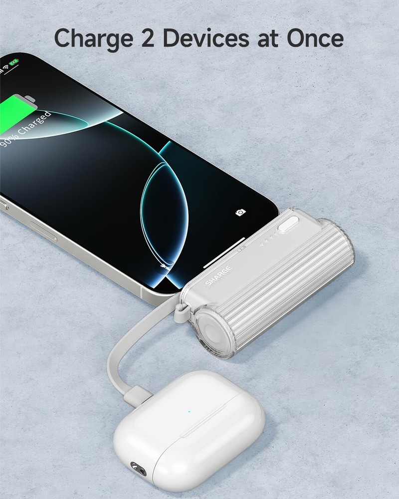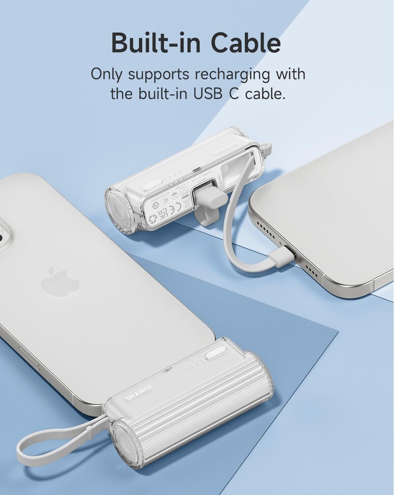 sharge Flow Mini Portable Charger, 5000mAh Small Power Bank with Changeable Plu Features: Changeable Plugs: Easily switch between iOS and USB-C plugs, ensuring compatibility with iPhones, AirPods, and Android devices Ultra-Portable: As small as a roll of film, weighing under 3.5 ounces, with a lipstick-sized design that fits in pockets or wallets Built-in Cable: Compatible with iPhone16/15/14 and Android devices; note: only charges Flow Mini using the included cable 5000mAh Capacity: Offers 1.5 charges for iPhone 12 and a full charge for iPhone 15/14/13, ideal for travel and on-the-go use No Overheat: Enhanced design reduces heat buildup, providing a cooler and safer charging experience Features: Changeable Plugs: Easily switch between iOS and USB-C plugs, ensuring compatibility with iPhones, AirPods, and Android devices Ultra-Portable: As small as a roll of film, weighing under 3.5 ounces, with a lipstick-sized design that fits in pockets or wallets Built-in Cable: Compatible with iPhone16/15/14 and Android devices; note: only charges Flow Mini using the included cable 5000mAh Capacity: Offers 1.5 charges for iPhone 12 and a full charge for iPhone 15/14/13, ideal for travel and on-the-go use No Overheat: Enhanced design reduces heat buildup, providing a cooler and safer charging experience eBay integration by