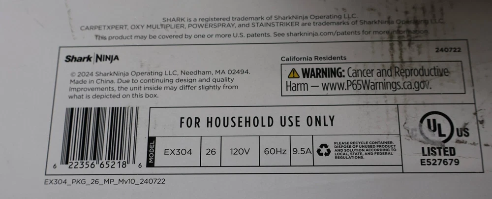 Shark CarpetXpert HairPro Pet Carpet Cleaner with StainStriker (EX304) Brand New, Never Used! Box has been opened **Will be shipped in original box**