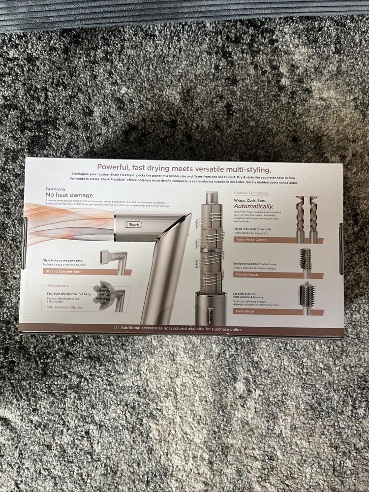 The Shark HD430 Flexstyle Air Styling & Drying System Hair Dryer Brush is a high-quality styling device designed to provide both styling and drying capabilities in one convenient tool. With a powerful 1600 W electric motor, this silver-colored hair dryer brush from Shark offers quick and efficient styling for at-home use. The Shark FlexStyle Air Styling and Drying Systems model HD430 is perfect for achieving salon-quality results with the convenience of a single device.