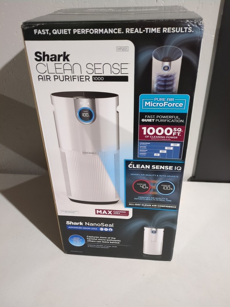The Shark HP201 Air Purifier Max with True HEPA in White is a powerful and efficient tower air purifier suitable for any room in your home. With a coverage area of more than 215 sq ft and filtration technology that captures contaminants such as gases, smoke, allergens, and more, this purifier ensures clean air for your space. Its features, including a digital display, quiet operation, and automatic shut off, make it convenient and easy to use. Designed by Shark, this model (HP201) offers reliable performance and a filter life of 6 months, monitored by its filter life indicator. Ideal for improving indoor air quality, this air purifier is a must-have for any home.