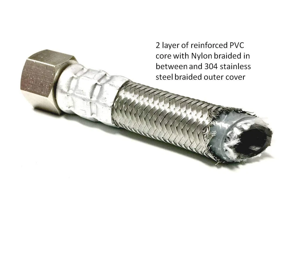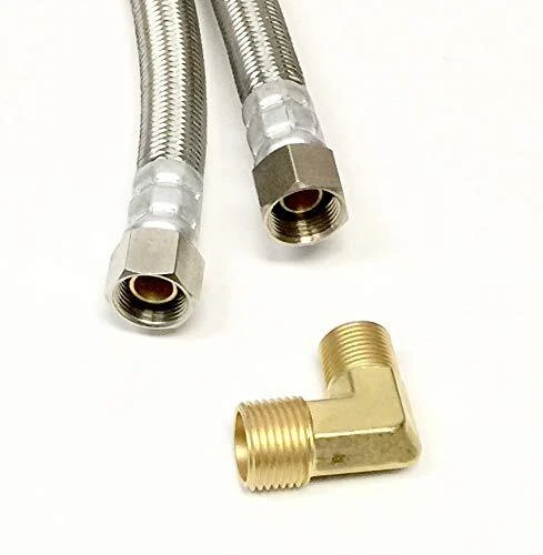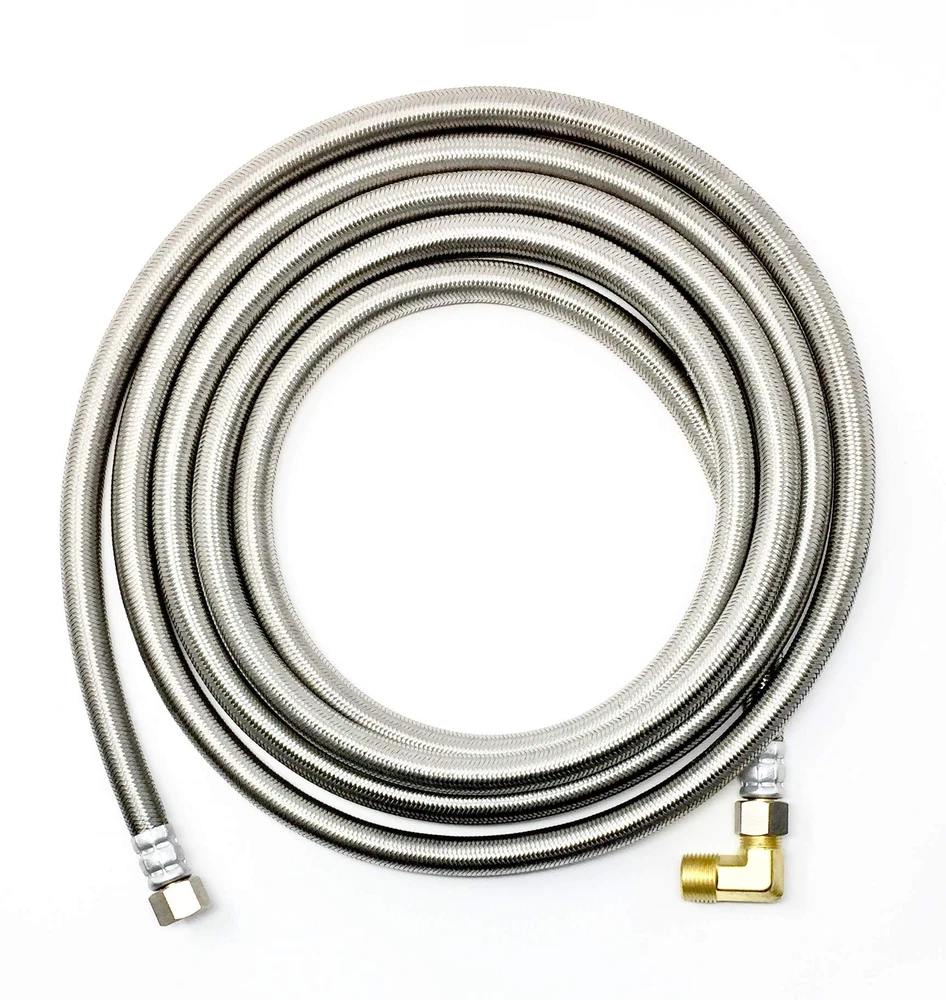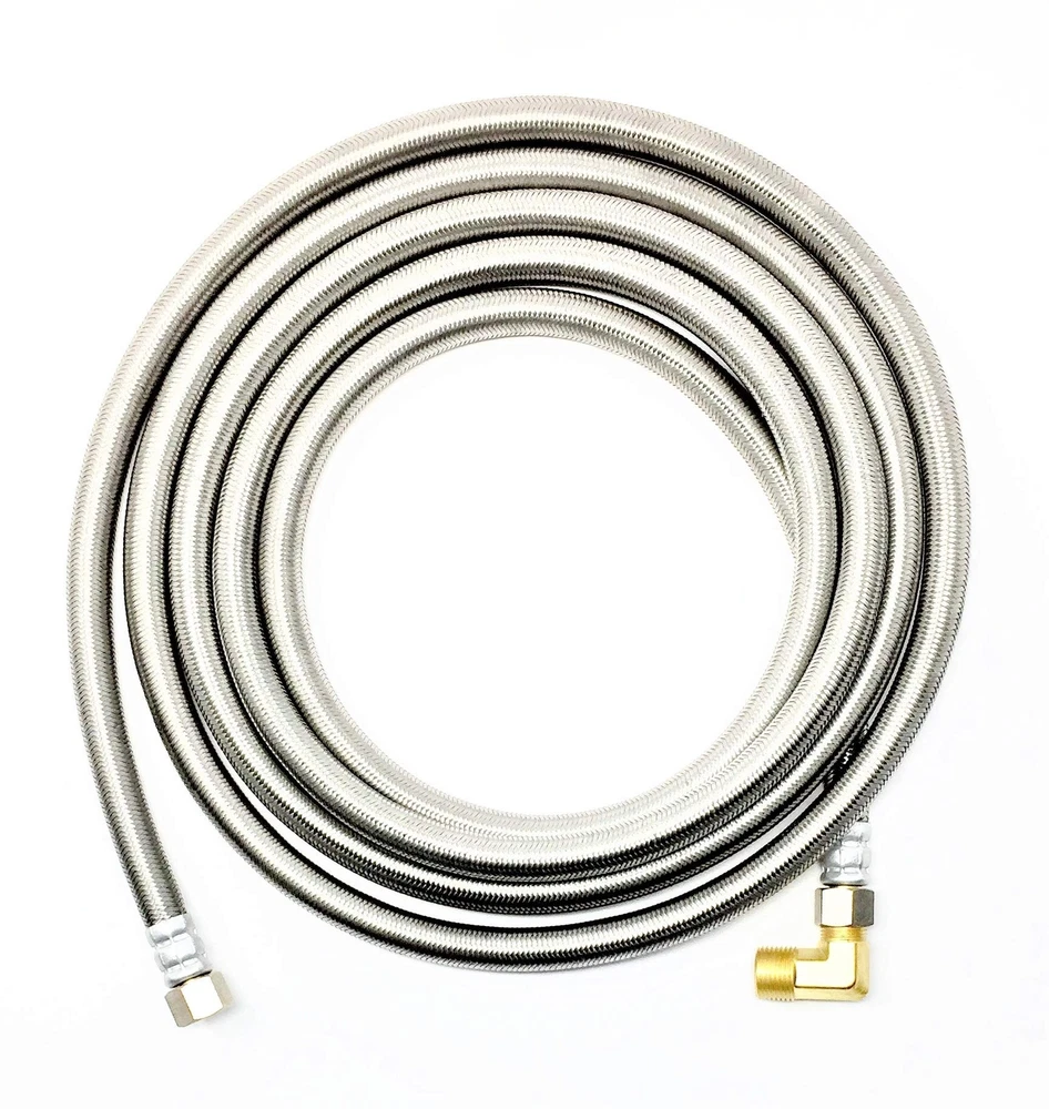 One 10FT dishwasher hose with 3/8"comp x 3/8" comp connectors attached with 90 degree elbow of 3/8" comp x 3/8" MIP. Key Features: Two layers PVC core with reinforced nylon wires in between and 304 stainless steel braided outer cover for high performance and durable water supply applications 3/8" comp x 3/8" comp connectors fits most of the dishwashers Comply with following standards: ASME A112.18.6-2017/CSA B125.6-17, NSF/ANSI 61,372 While typical water supply pressure ranges 50 - 80psi, our hoses are rated 290psi with burst strength up to 1500psi. Working temperature ranges -40 to 210F Come with 10-year warranty for added peace of mind. ONE 10ft 304 stainless steel braided premium dishwasher hose with 3/8" comp x 3/8" comp connection. Come with an elbow adapter of 3/8" comp x 3/8" MIP for easy connection to dishwasher. Also available (sold separately) is 3/8" comp x 3/4" FGH(Female Garden Hose) 90 degree elbow fitting BURST PROOF - Designed to last, our hoses use true 304 stainless steel for braided outer protective cover which last incredibly long time for effective protection against rust and burst. Some other hoses are not using 304 stainless steel for the braided cover and could result in rust even burst. INDUSTRY STANDARDS - Our hoses comply with following standards: ASME A112.18.6-2017/CSA B125.6-17, NSF/ANSI 61,372 EASY FIT - Our hoses connect to dishwashers with common 3/4" comp connections. Water source can be connected with 3/8" connector or 3/8" comp x 3/4" FGH (Female Garden Hose) connector fitting (sold separately). MONEY BACK GUARANTEE - We offer 100% money back gurrantee with no questions asked. This great product also comes with 10-year warranty for quality related issues. Rest assured for your purchases.