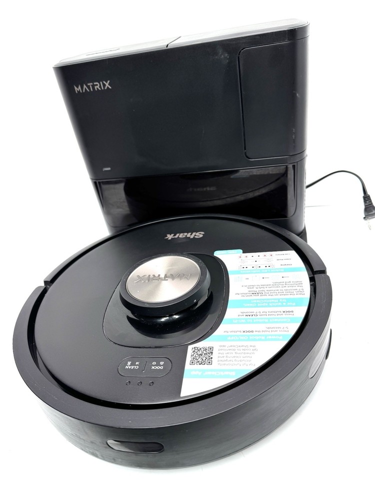 • used conditions- works great • some normal signs of previous used • Leaves No Spots Missed: With Matrix Clean, the robot vacuum cleans using a precision grid taking multiple passes over dirt and debris for deep cleaning coverage. • Incredible Suction: Powerful suction captures dirt and debris on carpets and hardwood floors tackling even the toughest of messes in your home. • Empties Itself: You can forget about vacuuming for up to one month with the bagless, self-emptying base. Holds up to 30 days of dirt and debris, and unlike traditional robots, no additional purchase of bags is necessary. • Perfect For Homes With Pets: Powerful vacuum suction and self-cleaning brushroll help capture pet hair, dust, and dander. • 2X Faster Cleaning: With extended clean technology, the robot will cover more space before having to return to its dock to charge (*vs. Shark RV2500, due to more initial runtime in recharge/resume mode.) • Self-Cleaning Brushroll: It digs deep into carpets and directly engages hardwood floors with PowerFins to pull up debris, hair, and dirt from all surfaces in your home – engineered to pick up more hair and is anti-hair wrap. • Better Map Accuracy With Precision Home Mapping: 360° LiDAR vision quickly and accurately maps your home so your robot can methodically clean detecting and avoiding objects in its path, day, or night (*objects 4.5 inches or greater in its path), adapting to everyday changes in the home (*vs.
