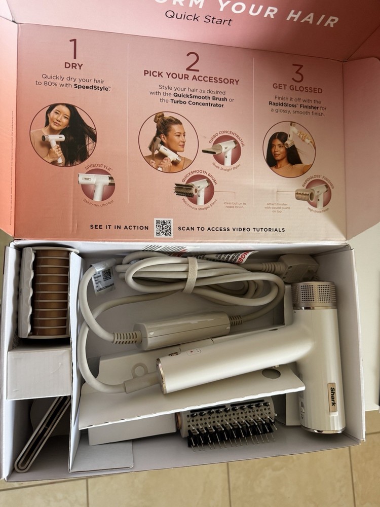 Used only once, in perfect condition. Shark SpeedStyle Professional Hair Dryer White RapidGloss Finisher Turbo
