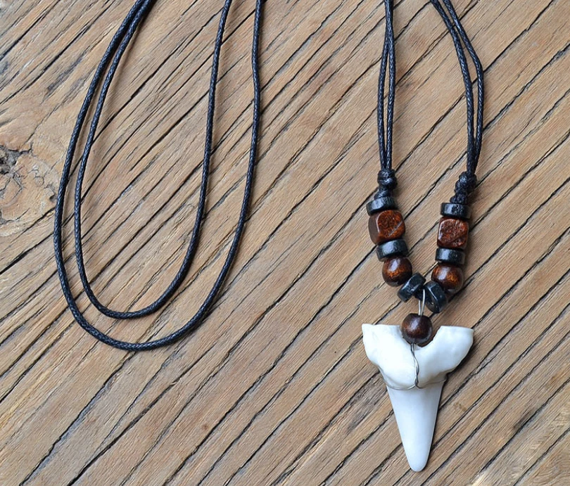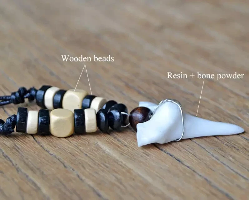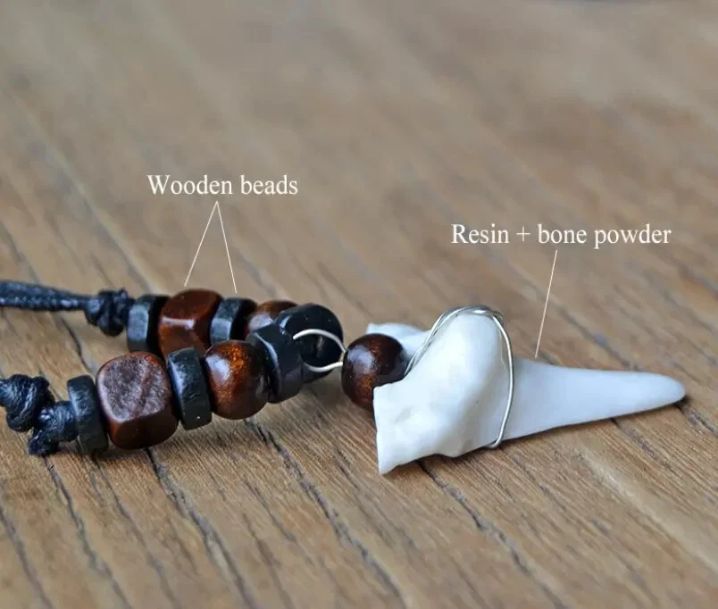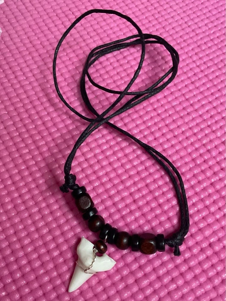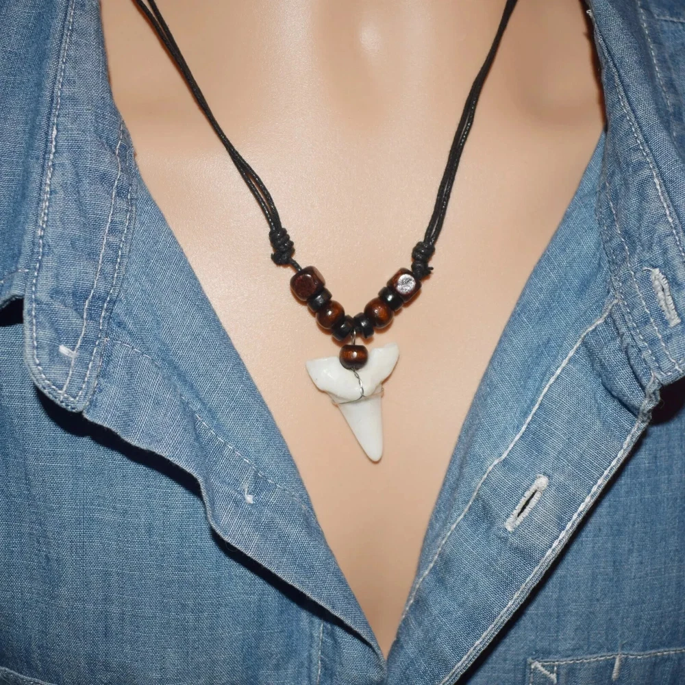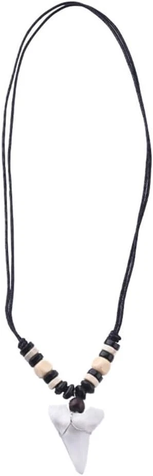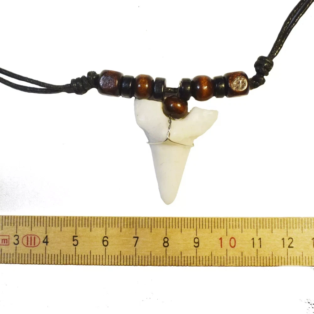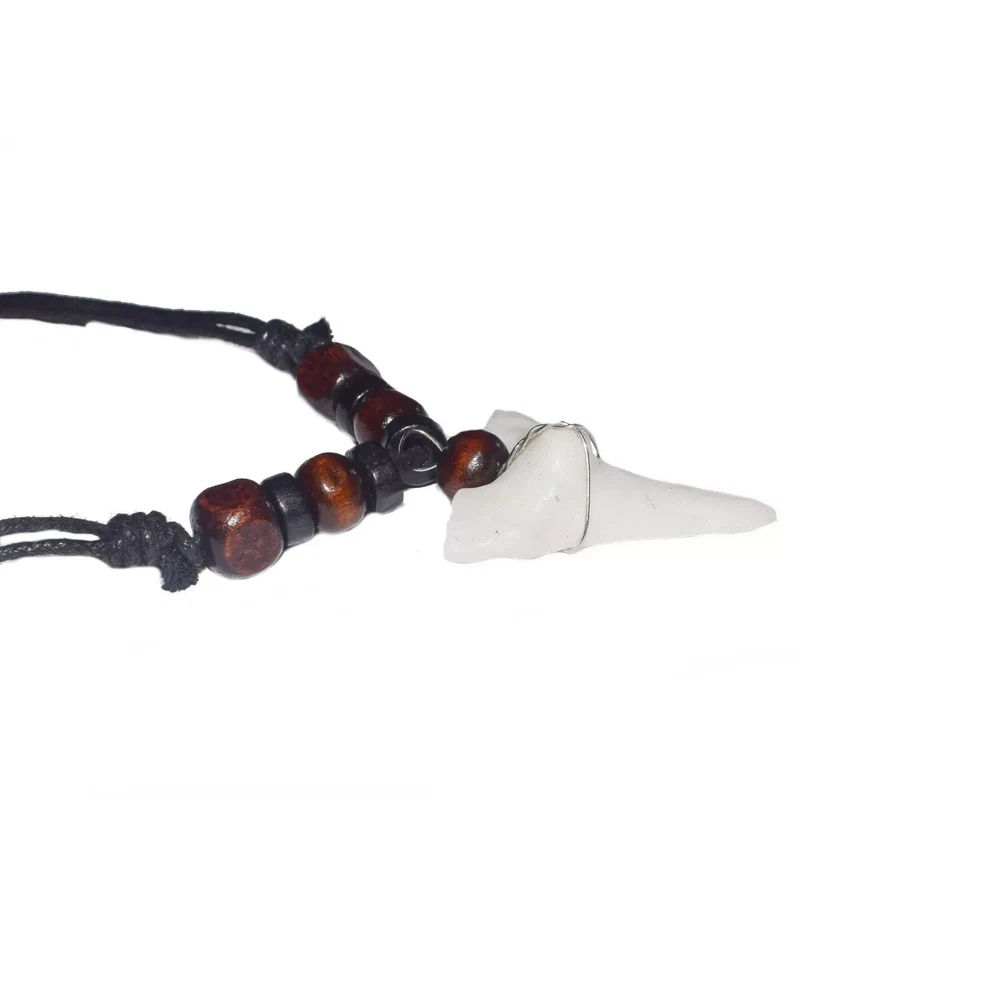 Quantity: 1 x necklace Material: faux shark tooth , wood beads , wax cord Color: Brown Black Beads, White Black Beads Size: adjustable from 17-33 inches Design: you choose from optional Conversion: 1 inch = 25.4mm = 2.54cm or 1mm = 0.0393 inch