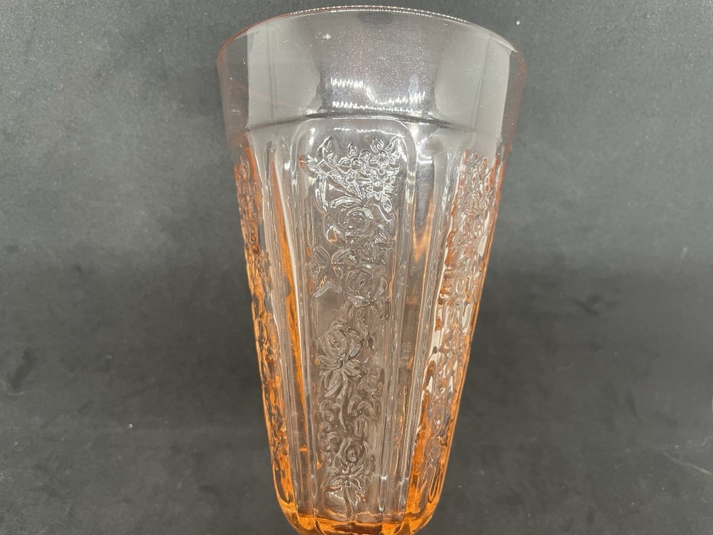 Set of 2 Pink Sharon Cabbage Rose Footed Iced Tea Glasses, in very good condition. The glasses are 6 3/4" tall, hold 15 oz, no chips, cracks or repairs. Four glasses are available, sold in sets of 2. Shipping will be combined if both sets are purchased.