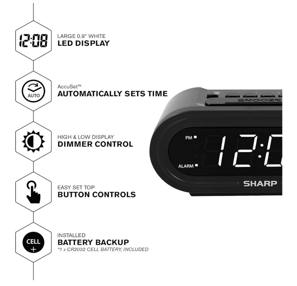 Wake up to the convenience of the Sharp Digital Alarm with AccuSet, an automatic smart clock designed to help you start your day off right. Its digital display provides clear time readings, while the oval shape and plain theme offer a simplistic, yet stylish design that fits seamlessly into any home decor. Crafted from durable plastic, this clock is both battery-powered and corded electric, ensuring you stay charged and on time, no matter where you are. With the Sharp Digital Alarm, setting reminders and alarms has never been easier, making it a must-have for any home or office setting.
