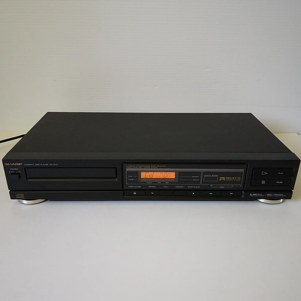 Sharp Model: DX-R777. This shelf CD player has been tested (with speakers) on all functions and works well. 3rd photo shows testing with a small active speaker. Pictures 4 to 8 show a CD playing in the unit. This CD player is in good cosmetic condition all around with minimal scratches mainly at the front top. See pictures for a detailed look. Item will ship well protected. Thanks for the interest in unit.