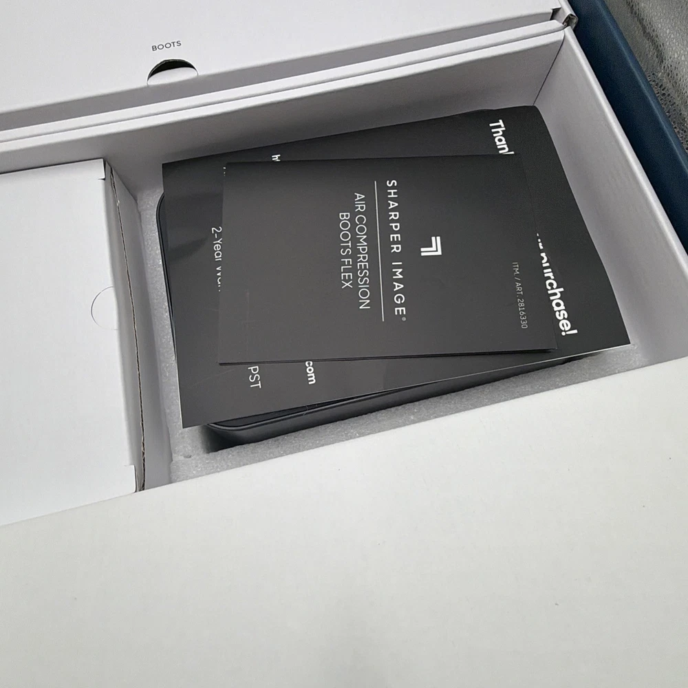 Boots still have tags. Sharper Image Air Compression Boots Flex Leg Recovery System Small/Medium (Blue).