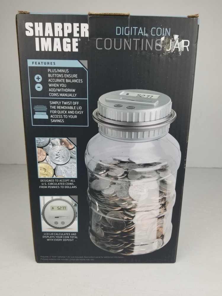 The Sharper Image Digital Coin Counting Jar is a sleek and innovative piggy bank that helps you easily track and count your spare change. With its digital display, you can accurately see how much money you have saved in real-time. It is a convenient and practical collectible item for anyone looking to save up for a specific goal or just enjoy the fun of collecting coins. Perfect for both kids and adults, this new in box product from Sharper Image is sure to make saving money a enjoyable experience.