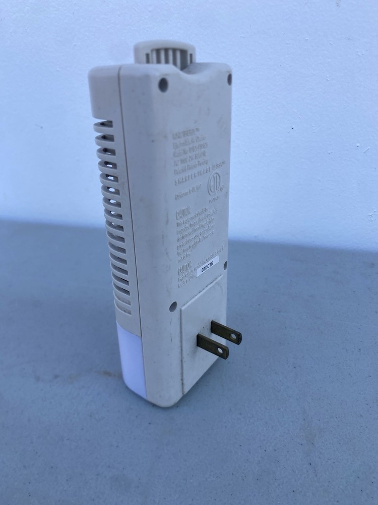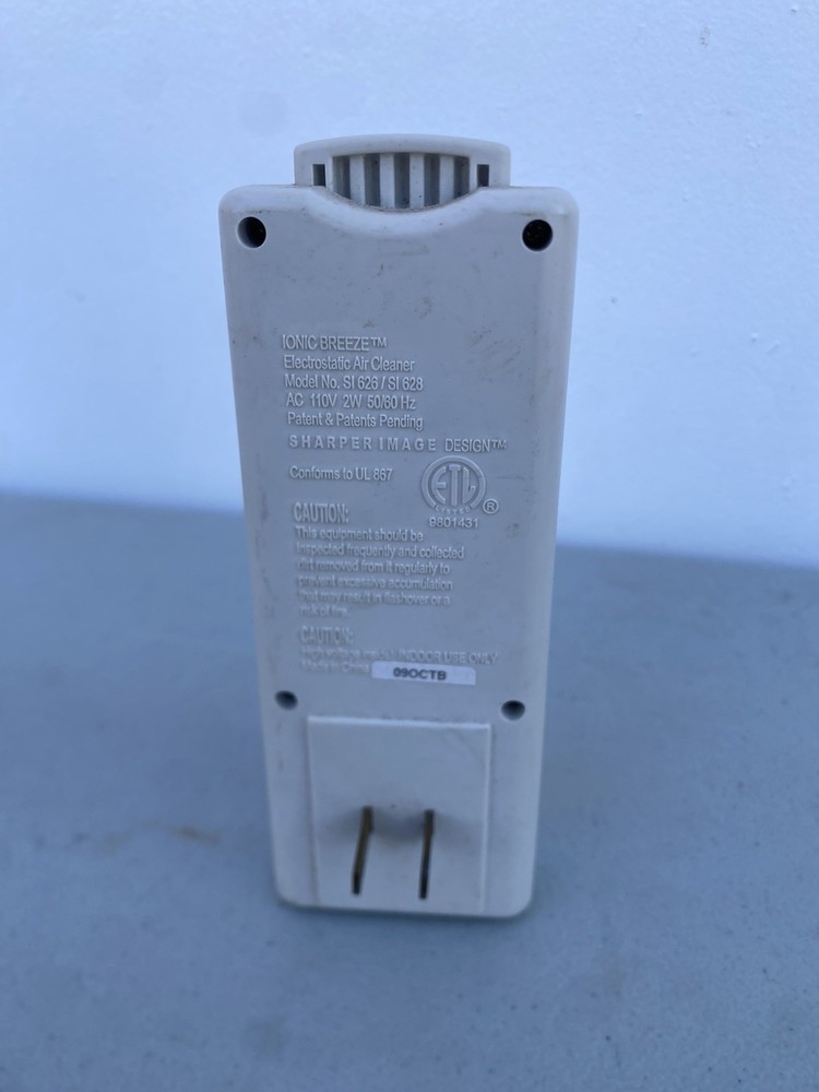 The Sharper Image Ionic Breeze Air Purifier Cleaner Wall Plug SI626 SI628 Nite Light is an electrostatic air cleaner that operates on an electrical power source. Its sleek design includes a Matte finish in shades of Gray/Dark Gray/Clear, making it suitable for mounting on the wall in any room. With its automatic control style and plug-and-run feature, this unit is easy to use and maintain, with a washable/reusable filter life. It also has a built-in night light for added functionality, making it ideal for use in bathrooms or small spaces to improve indoor air quality.