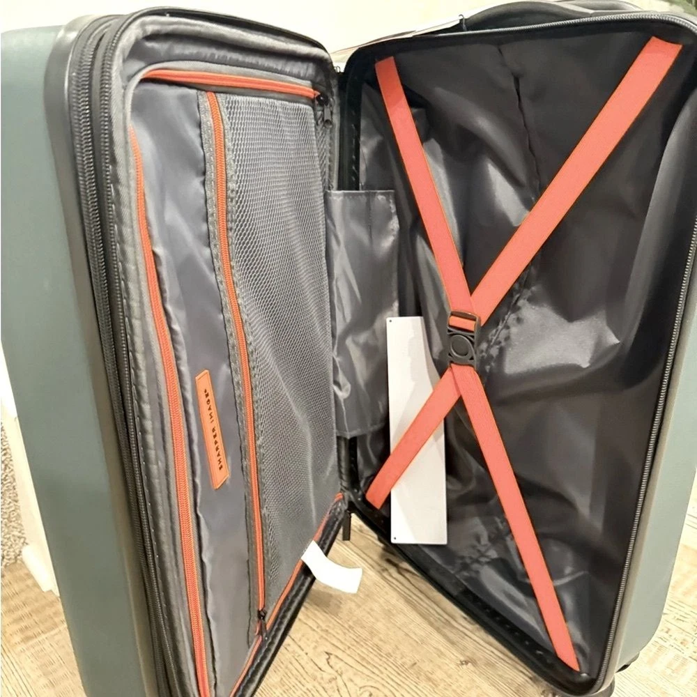 Some scratches, please check pictures Travel with confidence with the Sharper Image journey lite 20" carry-on hardside spinner. This durable luggage features 8-wheels, 2" of expansion and a retractable iron push button handle. Interior has organizational compartments and exterior is 100% acrylonitrile butadiene styrene (ABS). Exterior dimension with wheels: 14.1" L x 9.8" W x 22" H Interior dimension: 13.0" L x 9.0" W x 19.0" H Product weight: 7.84 lbs Exterior 100% durable acrylonitrile butadiene styrene Retractable push button handle Multi-directional 360 degree 8-wheel spinner system Top carry handle 2" expansion Interior organization 3 years limited manufacturer's lifetime warranty Meets carry-on requirements for most major airlines 100% Acrylonitrile Butadiene Styrene Spot Clean Imported WARNING: Prop 65 Notice for CA cust