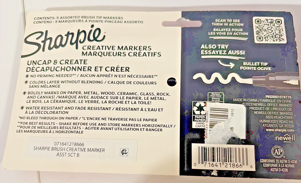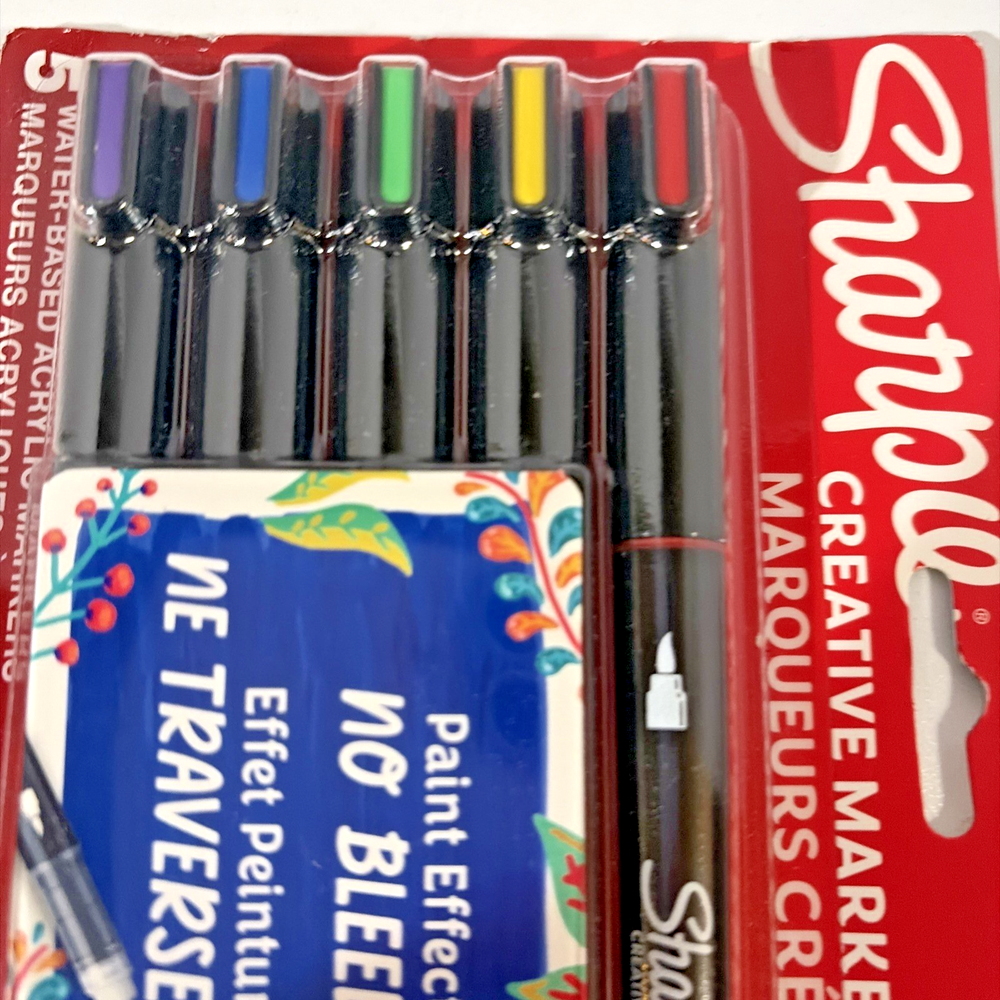 The Sharpie Creative Acrylic Markers Brush Tip 5 Assorted is a set of 5 water-based acrylic markers with bold brush tips, ideal for drawing, sketching, and calligraphy. These markers are designed for adult use and come in a variety of multicolor inks. The pen-like body shape and smooth grip make them comfortable to use for extended periods, while the ink is suitable for use on wood, glass, metal, ceramic, paper, and rocks. The Sharpie brand ensures quality and reliability in this set of paint markers.