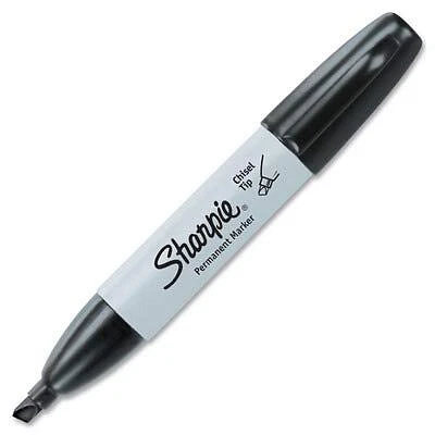 Sharpie 38201 Chisel Tip Permanent Markers; Proudly Permanent Ink Marks On Paper, Plastic, Metal, and Most Other Surfaces; Remarkably Resilient Ink Dries Quickly and Resists; Black The permanent marker that writes three ways, Sharpie Chisel Tip Permanent Markers have a versatile tip that makes broad, medium, and fine strokes - so you can express yourself any way you want. Key Features Proudly permanent ink marks on paper, plastic, metal, and most other surfaces Intensely brilliant colors create eye-popping, vibrant impressions Remarkably resilient ink dries quickly and resists both fading and water; AP certified Endlessly versatile chisel tip is perfect for countless uses in the classroom, office, home, and beyond Proudly permanent ink marks on paper, plastic, metal, and most other surfaces Intensely brilliant colors create eye-popping, vibrant impressions Remarkably resilient ink dries quickly and resists fading and water; AP certified Endlessly versatile chisel tip is perfect for countless uses in the classroom, office, home, and beyond Includes 12 black Sharpie permanent markers