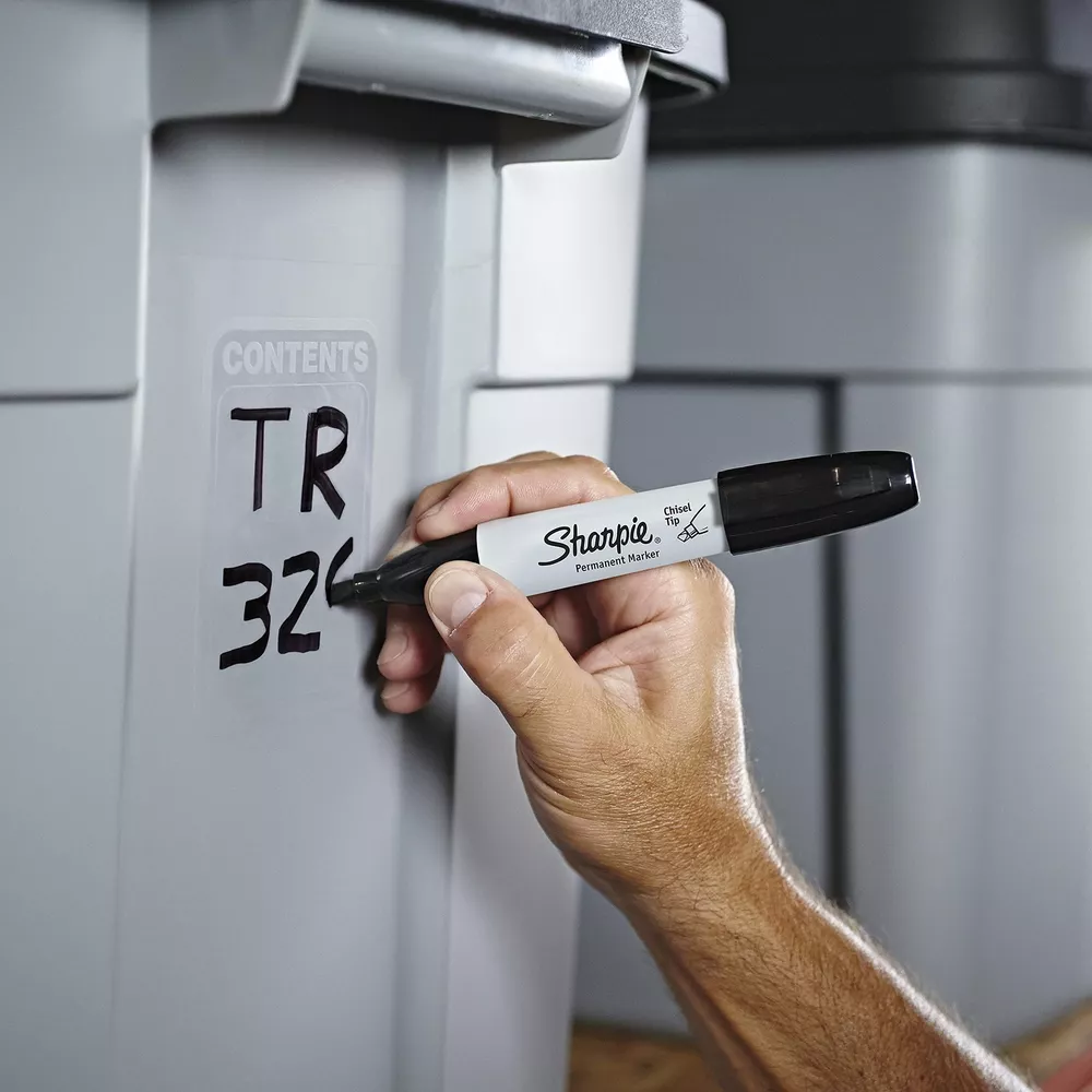Sharpie 38201 Chisel Tip Permanent Markers; Proudly Permanent Ink Marks On Paper, Plastic, Metal, and Most Other Surfaces; Remarkably Resilient Ink Dries Quickly and Resists; Black The permanent marker that writes three ways, Sharpie Chisel Tip Permanent Markers have a versatile tip that makes broad, medium, and fine strokes - so you can express yourself any way you want. Key Features Proudly permanent ink marks on paper, plastic, metal, and most other surfaces Intensely brilliant colors create eye-popping, vibrant impressions Remarkably resilient ink dries quickly and resists both fading and water; AP certified Endlessly versatile chisel tip is perfect for countless uses in the classroom, office, home, and beyond Proudly permanent ink marks on paper, plastic, metal, and most other surfaces Intensely brilliant colors create eye-popping, vibrant impressions Remarkably resilient ink dries quickly and resists fading and water; AP certified Endlessly versatile chisel tip is perfect for countless uses in the classroom, office, home, and beyond Includes 12 black Sharpie permanent markers