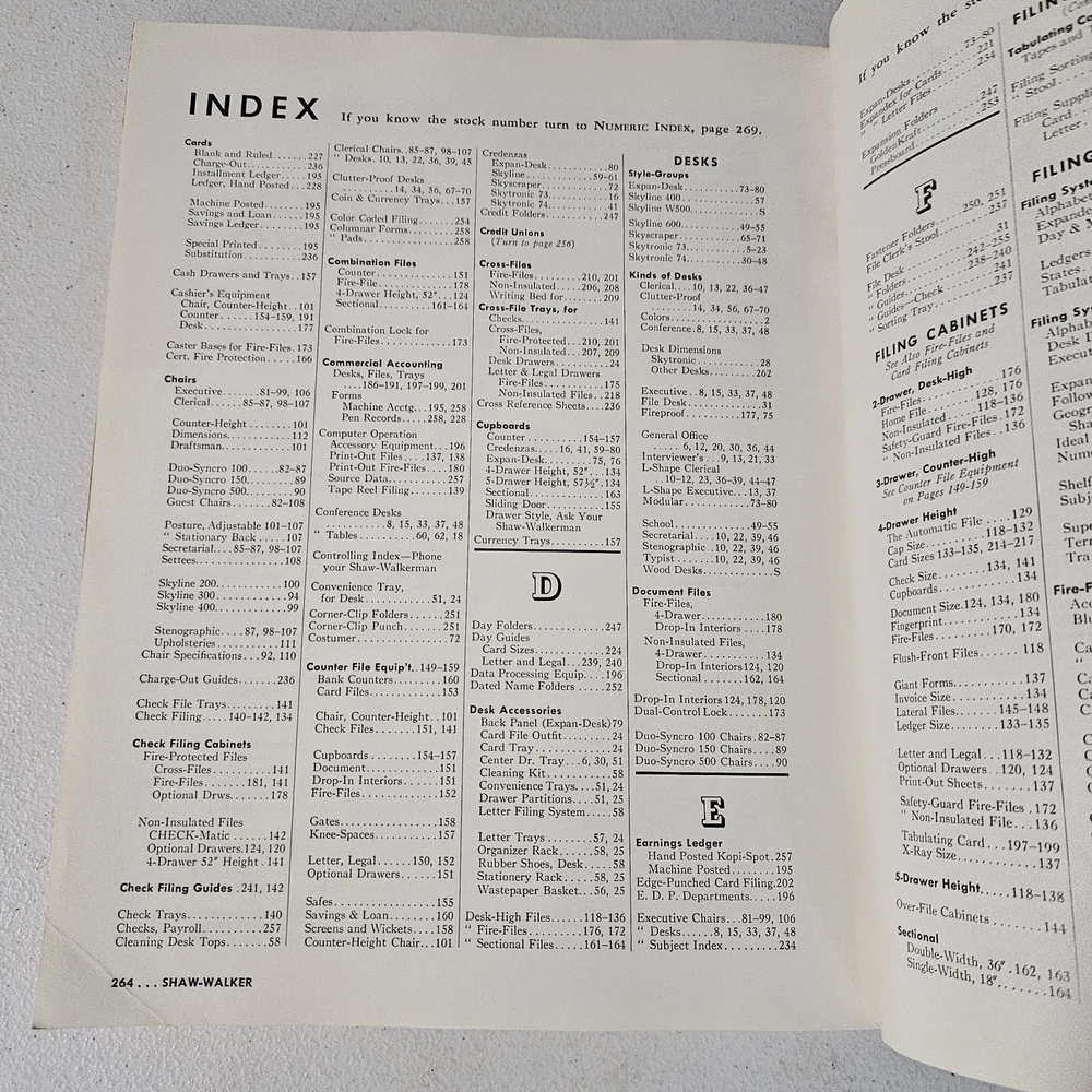 The catalog is colorful and in good condition. The pages are in good condition, and just one of the index pages has come partially loose. I did not see a date on this catalog, so look at the photos and decide for yourself