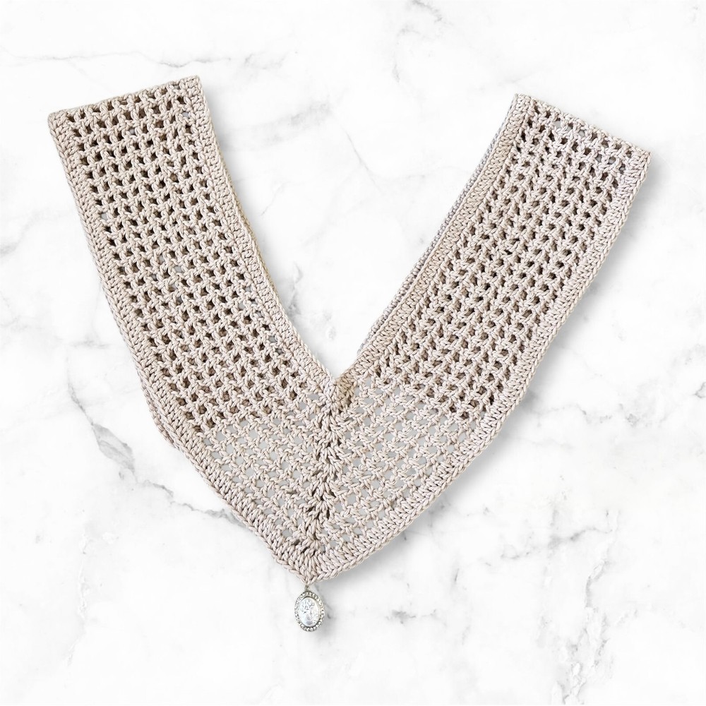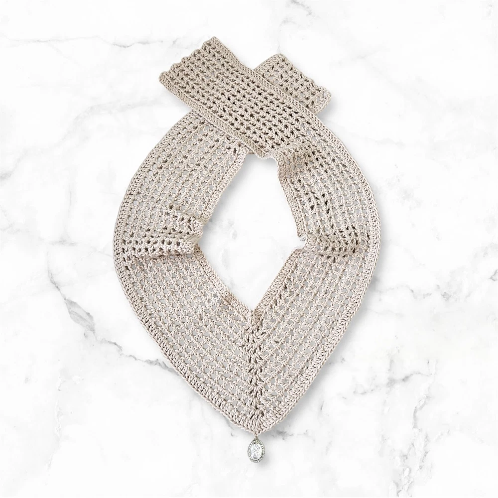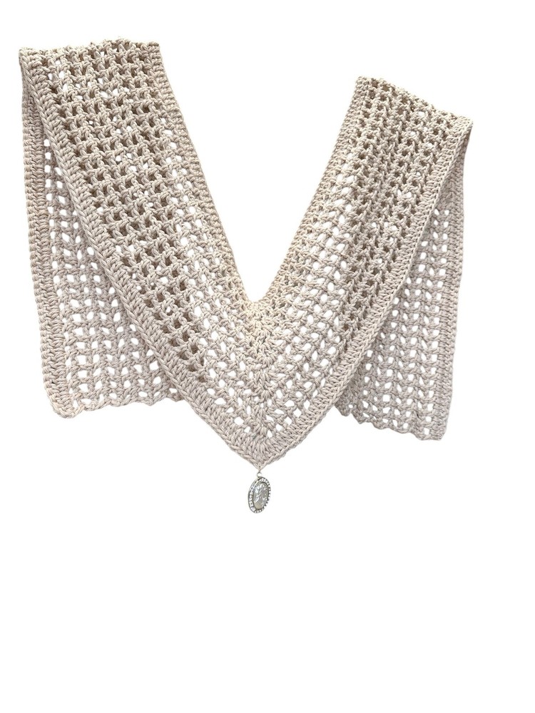 Shawl Scarf Triangle Beige with Pendant, Brand New Handmade Crochet Cotton Yarn