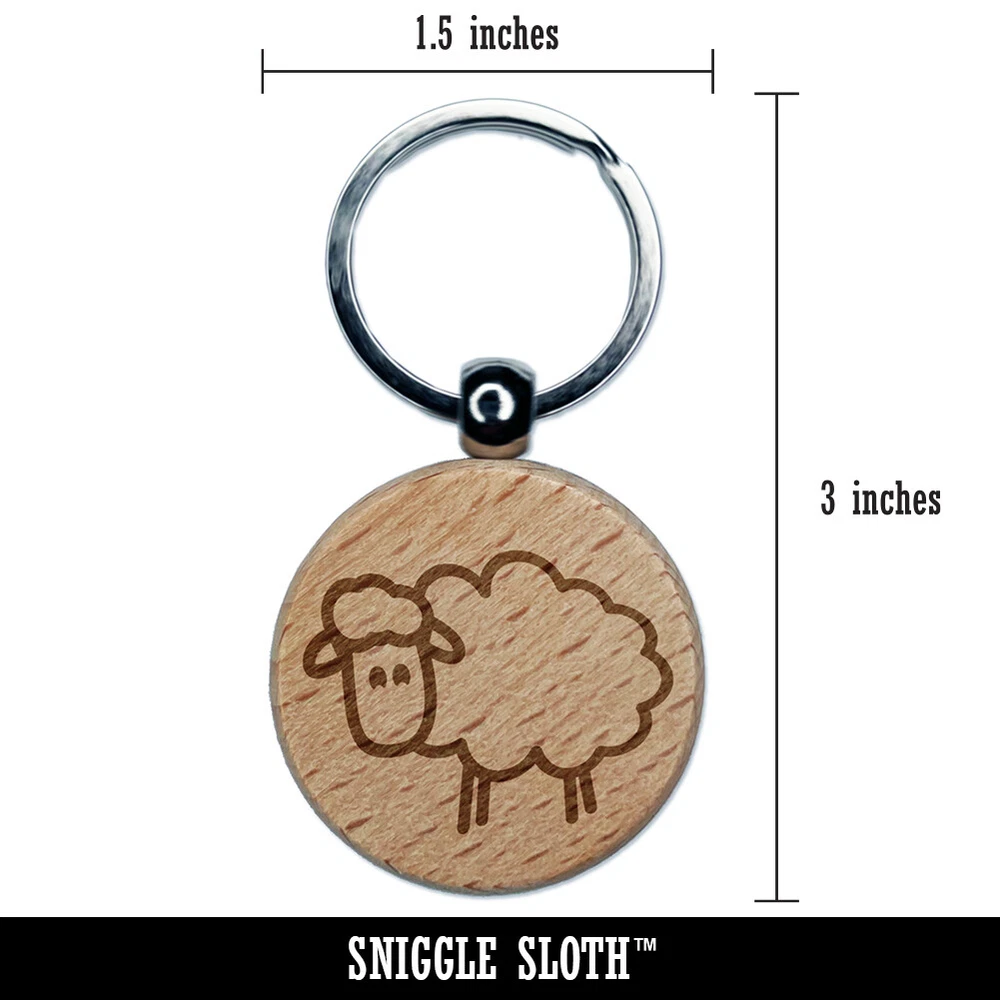 Sheep Doodle Engraved Wood Round Keychain Tag Charm
