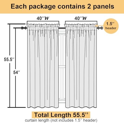 Water Resistance Level: Not Water Resistant Pattern: Solid Material: Fabric Included Components: No Recommended Uses For Product: Indoor Room Type: Kitchen, Living Room, Bedroom, Home Office, Dining Room Size: 40"W x 54"L (Pack of 2) gtin13: Does Not Apply Indoor Outdoor Usage: Indoor Brand: Does Not Apply Item Length: 1 Type: Does Not Apply Item Weight: 0.18 Kilograms Compatible with Rod Size: 2 Inches MPN: Does Not Apply Opacity: Sheer Specific Uses For Product: indoor decoration, home privacy, interior design Country of Origin: China Item Height: 1 Color: Black Special Feature: Window Treatments, Lightweight, Light Through, Classical, Sheer Product Dimensions: 54"L x 40"W Theme: Fashion Curtain Form: Sheer Curtain Date First Available: January 18, 2023 Manufacturer: Does Not Apply Package Weight: 0.18 Kilograms Unit Count: 1.0 Count Product Care Instructions: Machine Wash Item Width: 1 EAN: Does Not Apply Lining Description: Unlined Curtain pleat: Versatile Seasons: All Season Number of Items: 2 Hanging Method: Rod Pocket Closure Type: Rod pocket Top Style: Rod Pocket UPC: 768633309265 Style: Casual Weave Type: Plain Model Name: 2