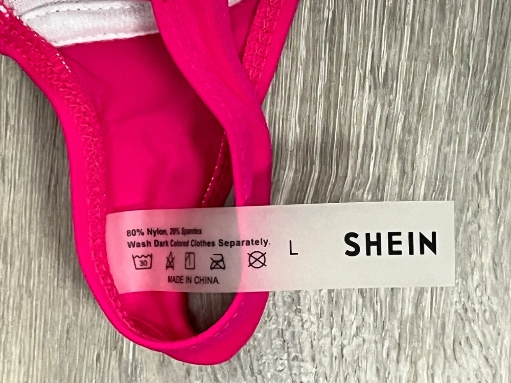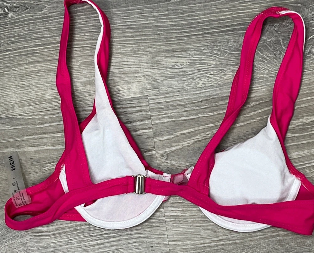 Shein Pink Bikini Top Swimwear Push-Up Underwire Removable Pads Lined Goldtone Hook Closure. Top only. Size Large Stretch nylon spandex