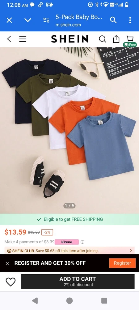 Looking for some comfortable and stylish activewear for your little boy? Check out this 5-piece from SheIn! The set includes a blue t-shirt, orange t-shirt, green t-shirt, white t-shirt, and light blue t-shirt, all made from 100% cotton material. These t-shirts are perfect for any occasion, whether it's a day at the park or a casual family gathering. In addition to the t-shirts, this set also includes a pair of matching pants. The orange and blue color scheme is perfect for boys who love bold and vibrant colors. The set is available in size 2Y to 3Y and is ideal for parents looking for comfortable and stylish clothing options for their little ones.