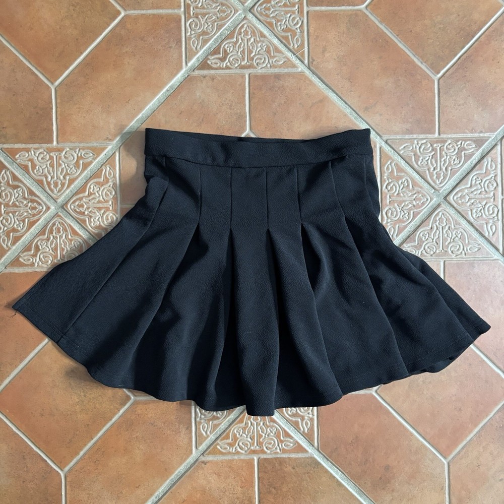 Shein Split Thigh Pleated Black Tennis Style Mini Skirt Womens Size M In good overall condition, no tears/holes or stains. Brand label is faded but says fits a women’s size medium. Has manufacturer zipper and button. High waisted and pleated to look like a tennis skirt. Split thigh.