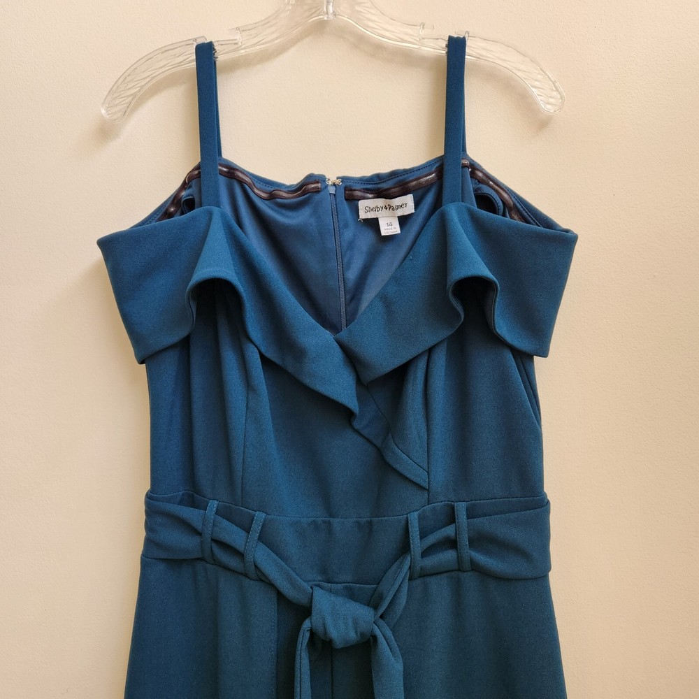 Shelby & Palmer Jumpsuit Womens Size 14 Dark Teal Split Leg Sleeveless Jumpsuit - Pre-Owned in Very Good Condition - Measurements in Photos - Returns acceptable within 30 days of purchase unworn, in original condition - Check out my E-bay Store. Lots of Choices Available. Reduced shipping for 2 or more items. Let me know before you pay so I can send you an invoice to discount the shipping