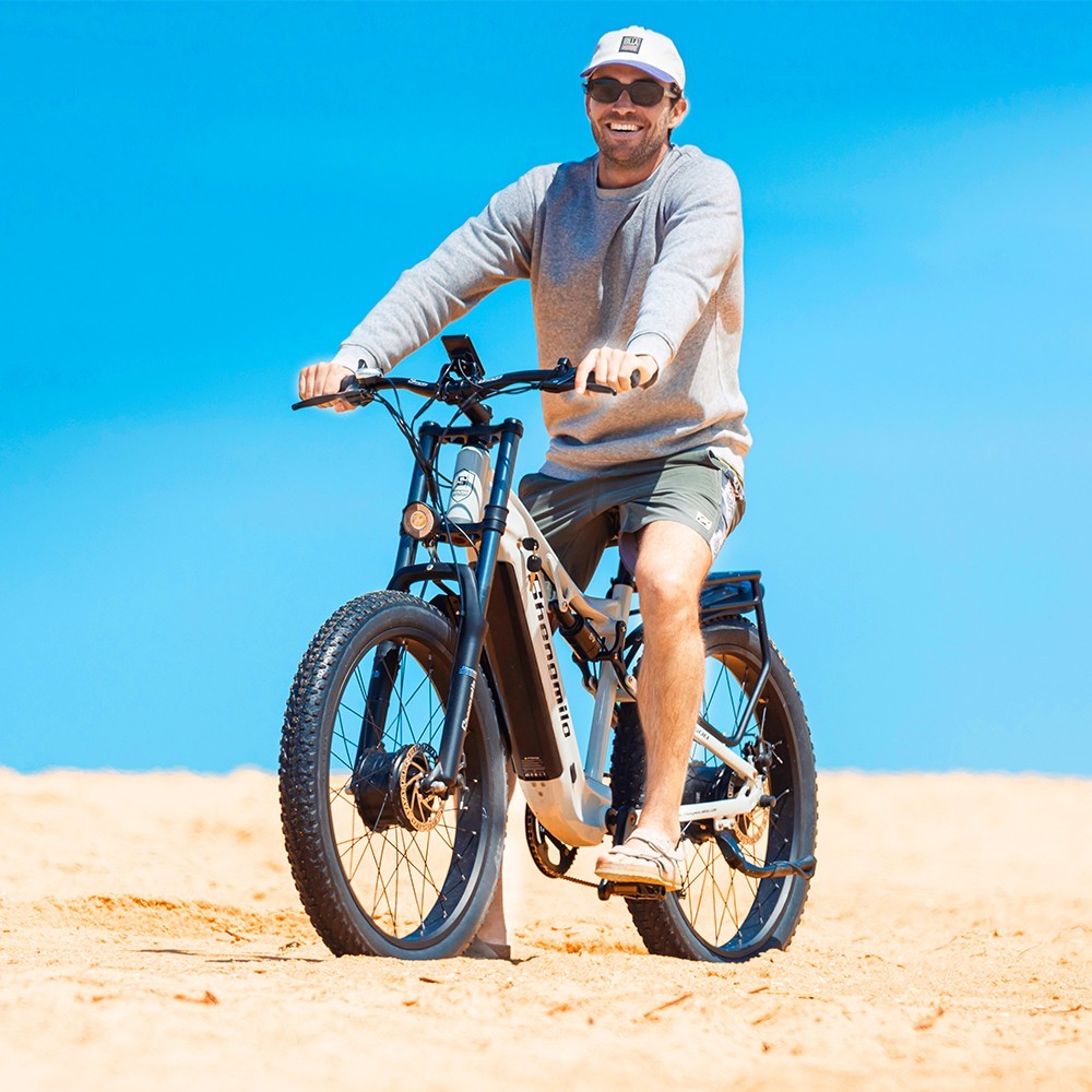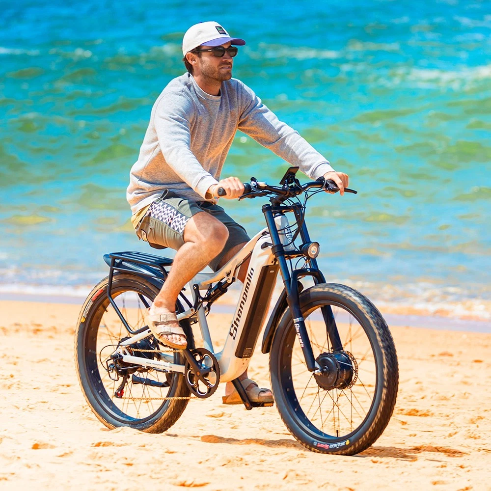 This e-bike is a blast to ride! The 26" fat tires give it a super stable, smooth feel on any terrain, and the dual suspension makes bumps disappear. The 500W motor has plenty of power for hills, while the Shimano 7-speed gears let you adjust easily. I love the comfortable grip levers and responsive brakes—plus, shipping was fast with free US delivery. Great value for the quality!