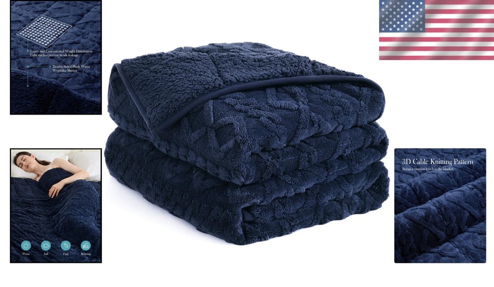 This weighted blanket is a game-changer for relaxation and sleep! The double-sided Sherpa is unbelievably soft, wrapping you in cozy comfort, while the even 20lb weight provides gentle, calming pressure. Perfect for unwinding at home or camping trips—stays in place without feeling restrictive. The cable-knit design looks stylish too. Worth every penny for deeper rest and warmth!