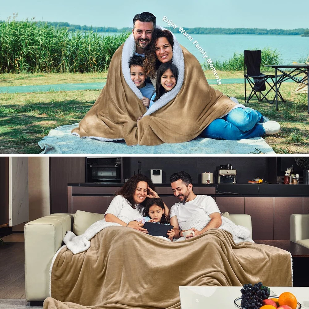 ❤❤❤❤❤ MATERIAL ❤❤❤❤❤ This super soft warm Sherpa blanket comes with dual-sided features and a mixture of truly elegant and soft fabrics. The front side of this throw blanket has a super soft flannel fleece. This provides a richer look and a fantastic sheen, while the back has a Sherpa fleece feel. ❤❤❤❤❤ VERSATILE ❤❤❤❤❤ This blanket's material makes it suitable for all seasons. It is perfect for watching TV in one's room or lying on a sofa or bed. It will add extra texture to your living room. It is also suitable for outdoor travel, as its comfortable casual appearance allows it to maintain your warmth and comfort. ❤❤❤❤❤ EXCELLENT QUALITY ❤❤❤❤❤ ★Selection of high-quality fabrics, touch silky, milk-like lubrication, fluff delicate. ★Fine workmanship, non-off-line, not running, durable, elegant appearance. ★It is made from natural materials with no added chemicals, making it safe for your family. ★This blanket's manufacturing process includes a multi-channel carding process that increases its warmth and a thickened encryption process to make it more comfortable. ★Its American cross packaging, with an exclusively designed girdle color card and a matching ribbon make it look beautiful and elegant. It is a perfect gift choice for birthdays, weddings, Christmas, Mother's Day or Thanksgiving. HEAVY & THICK : 250 Gsm Fleece And 250 Gsm Sherpa, One Side Looks Smooth And The Other Touches Fluffy And Cozy, Use Eco-friendly Dyes To Ensure Blanket Hypoallergenic And Anti-static 4 SIZE AVAILABLE:Extra Warm Sherpa Blanket Is Available In Throw, Twin, Queen And King Size, Bring Chic Look To Your Bedrooms, Living Rooms, Sofa, Couch, Car And Offices VERSATILITY: A Perfect Choice For Camping Outdoor In Spring, Napping In Air-Condition Room In Summer, Reading On Sofa In Fall/Autumn And Snuggling In Bed In Winter With Pets NICE GIFT: Given Its Beautiful Pattern,This Plush Sherpa Fleece Blanket Can Be A Good Choice As A Gift,Which Conveys The Concern And Blessing To Your Family, Friends And Lover EASY CARE: Machine Wash Cold Separately, Gently Cycle Only, No Bleach, Tumble Dry Low, Do Not Iron. This Fluffy Blanket Will Not Shed, Pill And Fall Apart After Washing