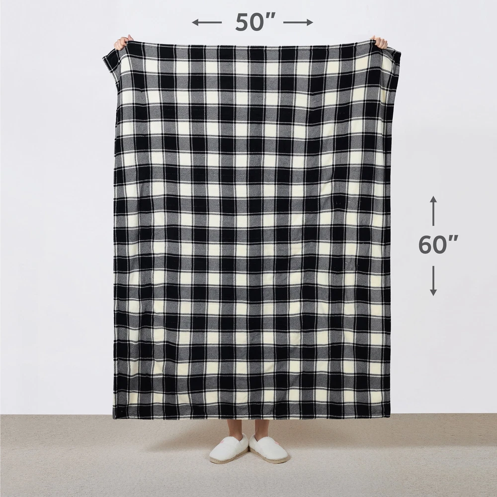 Sunbeam Electric Heated Throw Blanket – White & Black Buffalo Plaid, Microplush & Sherpa Stay warm and cozy with the Sunbeam White & Black Buffalo Plaid Heated Throw Blanket . Perfect for chilly nights, this luxurious throw combines style, comfort, and advanced heating technology to keep you snug all season long. ✨ Key Features: Effortless Warmth: Simple push-button controller for easy use. Customizable Comfort: 4 heat settings (Warm, Low, Medium, High) to find your perfect temperature. Safety First: Equipped with a 4-hour auto shut-off and overheat protection for peace of mind. Premium Materials: Ultra-soft microplush with reverse Sherpa/Faux Shearling fabric – a rich, cozy texture you’ll love. Perfect Size: Measures 50" x 60", ideal for snuggling on the couch, bed, or favorite chair. Easy Care: Machine washable and dryer safe for hassle-free maintenance. 🌟 Stylish and Functional: The elegant White & Black Buffalo Plaid pattern adds a touch of rustic charm to any space, making it both a practical and stylish accessory for your home. 💡 Trusted Quality: Sunbeam, an American brand with over 125 years of expertise, ensures all electric bedding products are ETL certified for quality and safety. 📏 Available Colors: Choose your favorite: White & Black Buffalo Plaid, Red & Black Buffalo Plaid, or Slate. Why settle for ordinary blankets? Upgrade to the Sunbeam Heated Throw and experience warmth, comfort, and style like never before.