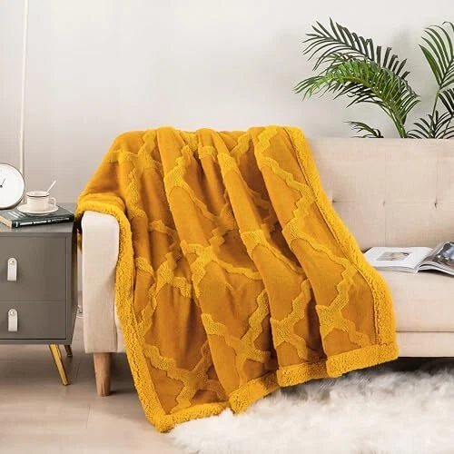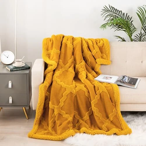 Return Policy Fast Delivery Trusted seller Sherpa Throw Blanket 50 × 60 inches, Classical Geometric Ultra Soft Sherpa Fleece Blanket for All Season, Warm Cozy Boho Blankets for Bed Couch Sofa Office Camping, Gold Product Description Unique Design:coral fleece Jacquard face and sherpa fleece reverse with a classical design offer you a softer touch. Snuggling on your couch or bed with our blankets to enjoy happy hours. Different colors meet your needs. Warm & Comfort: Manufactured from premium microfiber, this super soft microfiber velvet reversible to ultra-plush throw blanket, which offer relaxing warmth and coziness. Great Gift Idea: These beautiful blankets could be perfect present for any occasion - Birthday, Christmas, Women's Day, Mother's Day, Father's day, Thanksgiving Day, Housewarming. Remember, it's a gift that will hold up over the years. Blanket Size: 50'' x 60'', suitable for couch, sofa, bed, camping and home decoration. Please note that color may vary slightly from the picture, due to lighting conditions, camera calibration and your computer monitor settings. Machine Washable: Machine wash on gentle cycle with cold water,tumble dry at very low temperature Shipping Returns Payment Shipping Shipping is FREE to all addresses other than APO/PO boxes in the lower 48 states. All our stock ships from US-based warehouses. Shipped via USPS or UPS (depending on location and package weight) Unless stated otherwise, all orders will ship within 24-72 hours of your payment being processed. Check our feedback to see the great reviews of FAST shipping we offer. Returns Seller does not accept returns Payment We currently accept payment via eBay managed payments only. Once payment is cleared, we will dispatch your shipment within 1-3 business days. Please refer to the "Shipping" tab for more information regarding shipping speed to your destination.