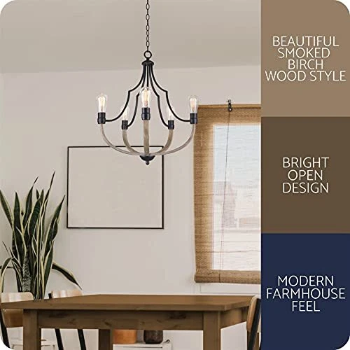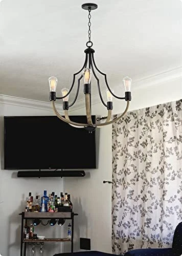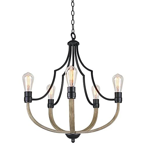 Return Policy Fast Delivery Trusted seller Sherwood 27" 5-Light Modern Farmhouse Chandelier, Smoked Birch Wood + Black Finish Product Description [FARMHOUSE DESIGN] This wide 5-light industrial pendant chandelier is an instant centerpiece, showcg sweeping arms and standout design in a smoked birch wood finish to instantly upgrade your entryway or living room. The large, curved hanging light includes high-end black accents while casting a warm glow over its installed space. This gothic chandelier is antique inspired but updated for modern times, making it a prime choice amongst designers and builders [EASY INSTALLATION] Make a bold statement in front door entryways, foyers over stairwells, in living rooms / dining rooms with cathedral ceilings or as a standout character piece in a lobby or restaurant. This rustic chandelier is very popular in luxury modern homes and hospitality spaces. Its adjustable chain can easily accommodate rooms with high and sloped / vaulted ceilings, effortlessly transforming your space [ETL LISTED FOR YOUR SAFETY] ETL listed for dry locations. Uses (5) LED, CFL or up to 60W traditional incandescent medium base bulbs. Bulbs sold separately. Pair with Edison Bulbs for a vintage look. Dimmer compatible. Includes all hardware for quick installation of this modern industrial chandelier [DIMENSIONS] Adjustable Height: 30" ~ 126", includes 8 feet of chain. Fixture Body: 27" (H) x 23" (D), Canopy: 5" (D) [FITS MANY DECOR STYLES WITH UNMATCHED WARRANTY] This unique medieval curved chandelier in a smoked birch wood finish complements all decor styles from rustic and modern, to farmhouse and country designs. Enjoy peace of mind with our 5-year warranty, ing your complete satisfaction Shipping Returns Payment Shipping Shipping is FREE to all addresses other than APO/PO boxes in the lower 48 states. All our stock ships from US-based warehouses. Shipped via USPS or UPS (depending on location and package weight) Unless stated otherwise, all orders will ship within 24-72 hours of your payment being processed. Check our feedback to see the great reviews of FAST shipping we offer. Returns Seller does not accept returns Payment We currently accept payment via eBay managed payments only. Once payment is cleared, we will dispatch your shipment within 1-3 business days. Please refer to the "Shipping" tab for more information regarding shipping speed to your destination.